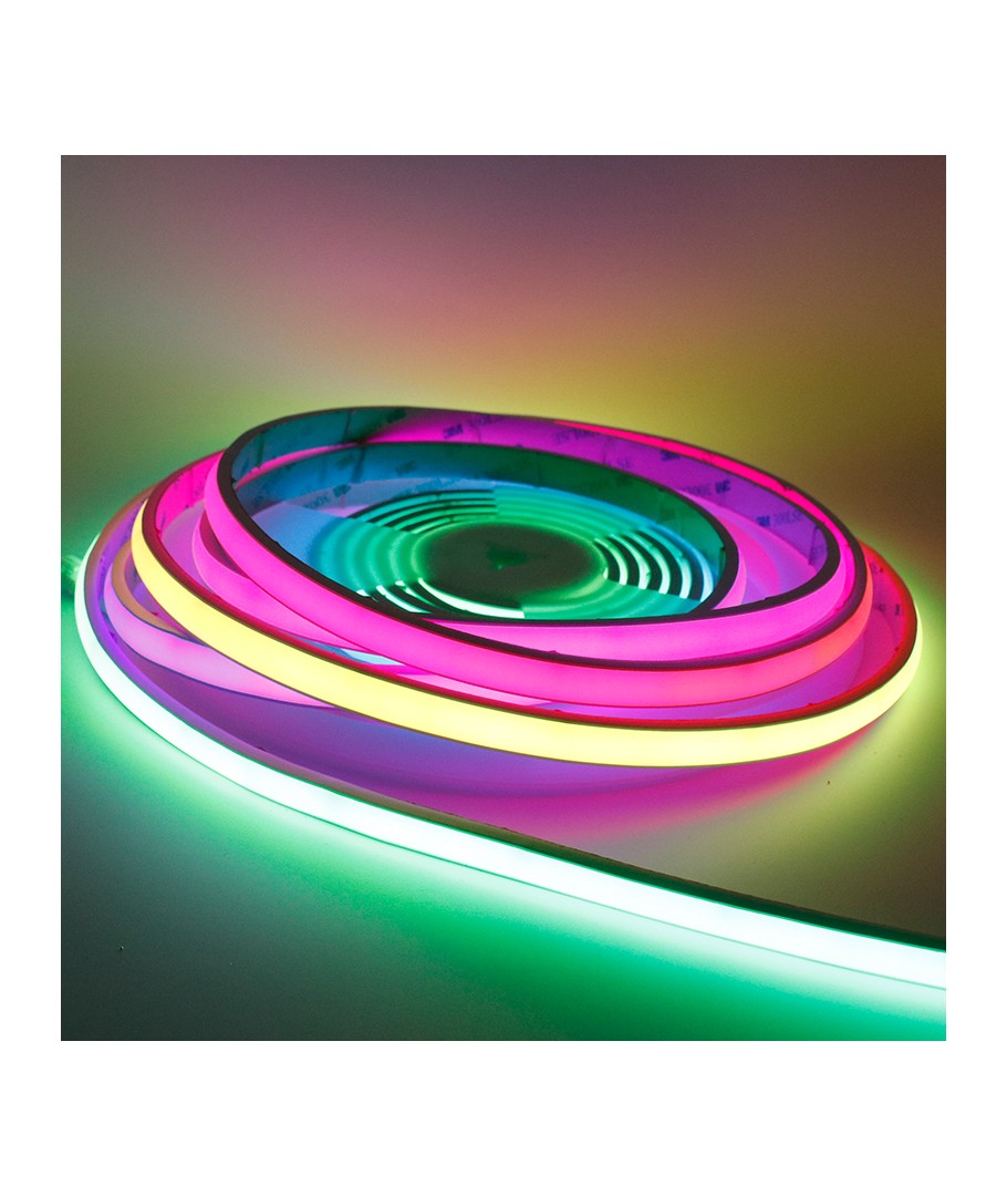 Förvandla dina utrymmen med en 5 meter lång Neon RGBIC COB LED-remsa som ger oändliga möjligheter för kreativ belysning. Med 720 LED per meter erbjuder denna LED-remsa ett intensivt och jämnt ljusutsläpp över hela längden.