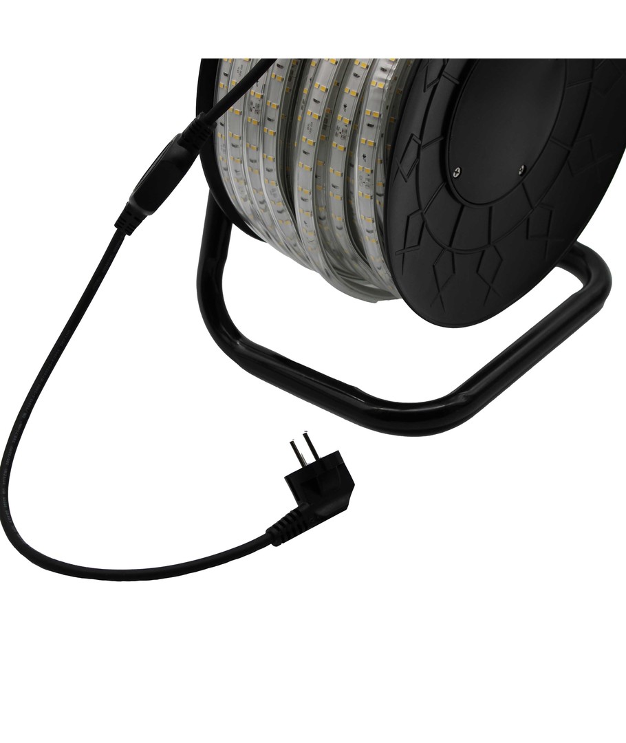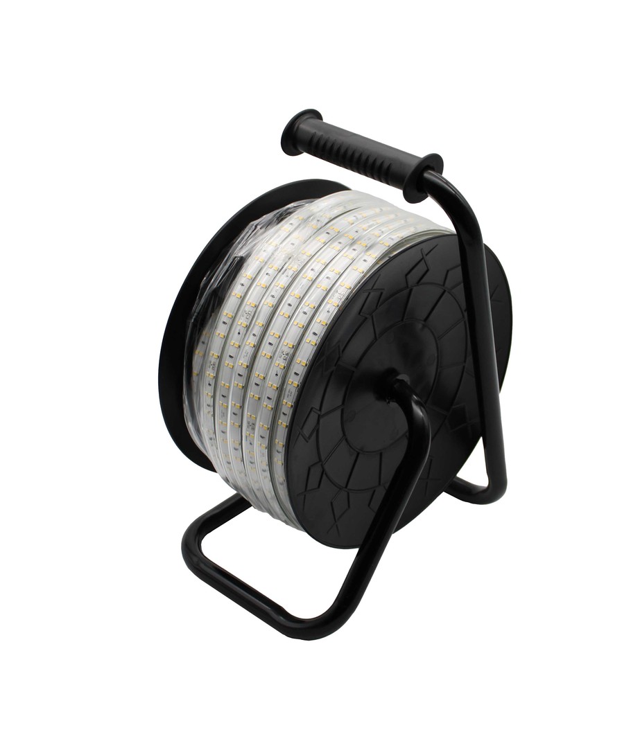 Designen är kompakt och enkel att hantera tack vare den praktiska kabelvindan, som gör det smidigt att rulla ut och in vid behov. Detta, kombinerat med den hållbara vattentäta designen, gör LED-stripen till ett utmärkt val för både inomhus- och skyddade utomhusmiljöer.