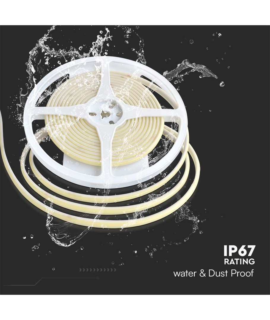Med dimensionerna 8 x 5 mm är denna LED-strip smidig att installera och anpassa. Den har en IP67-klassificering, vilket innebär att den är vattentät och hållbar för användning i olika miljöer – dock bör den inte placeras i ständig kontakt med vatten.