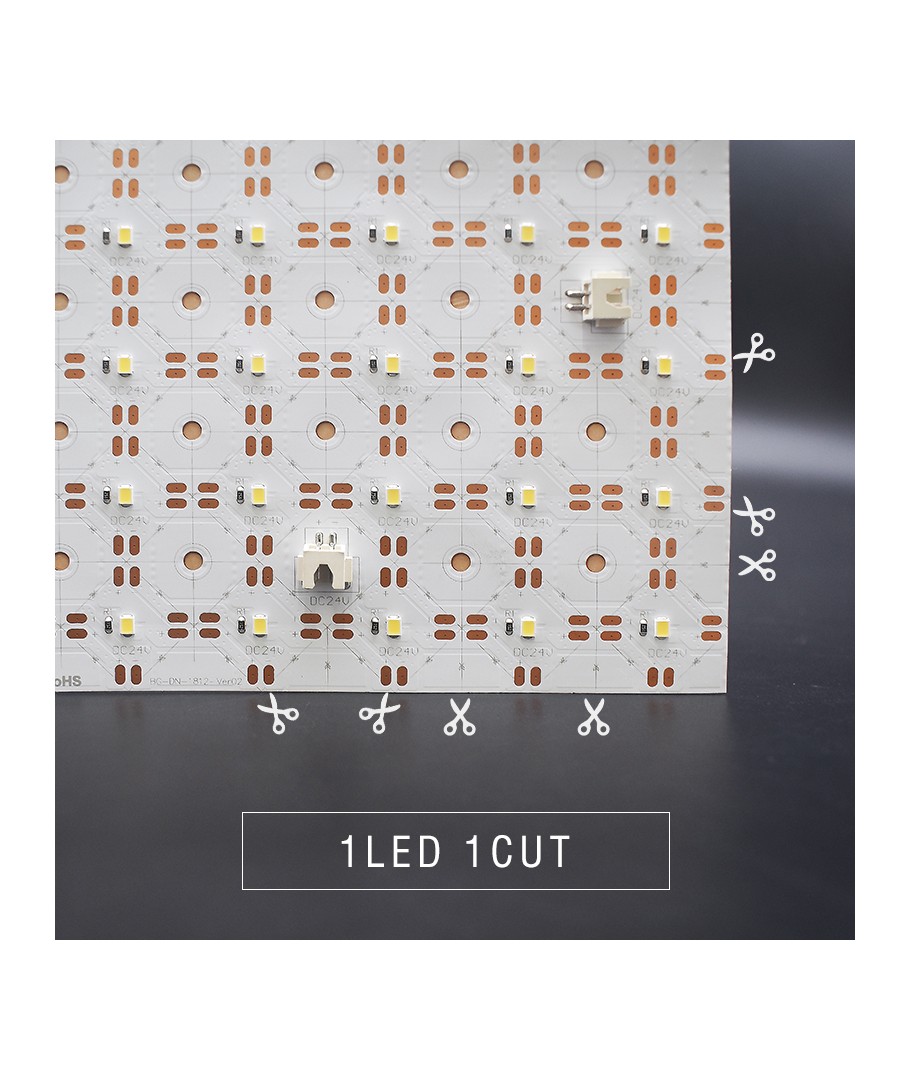 Det 25x25 vikbara LED-ark RA94 på 12W är ett självklart val för dem som vill skapa unika belysningslösningar med anpassade designer.