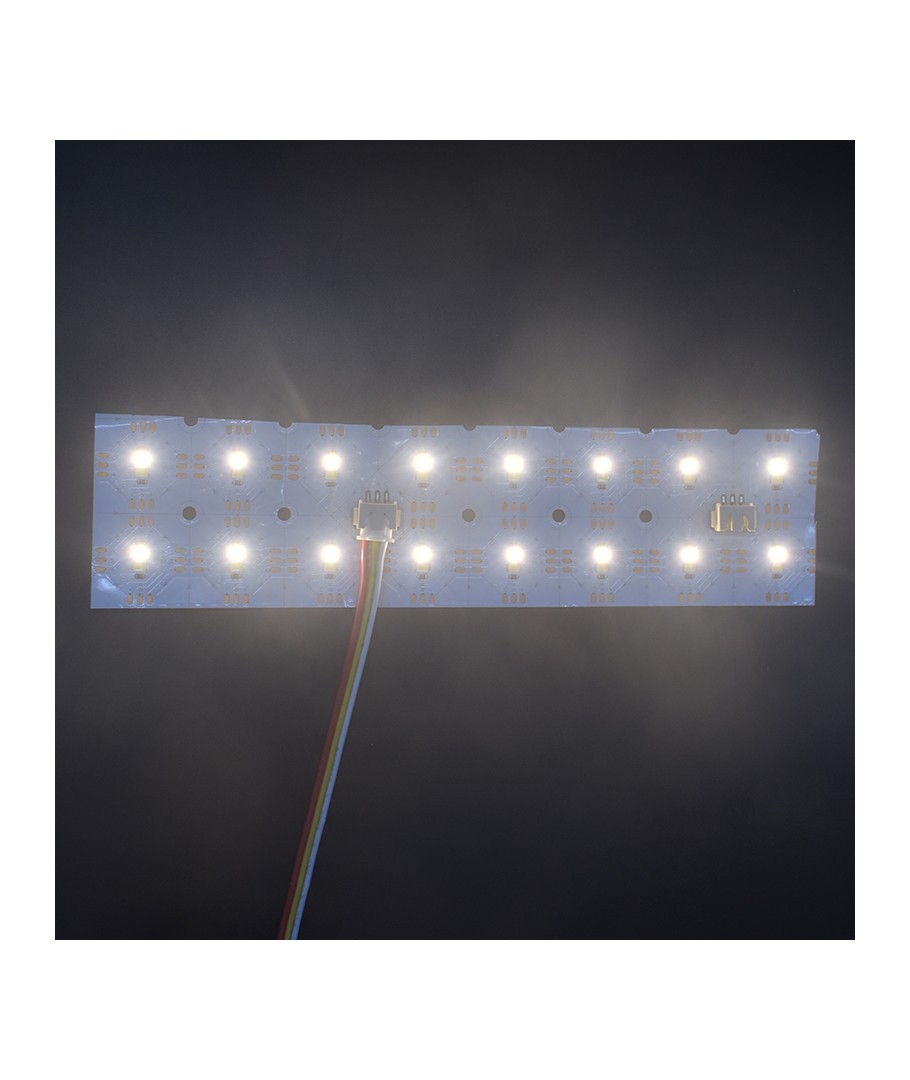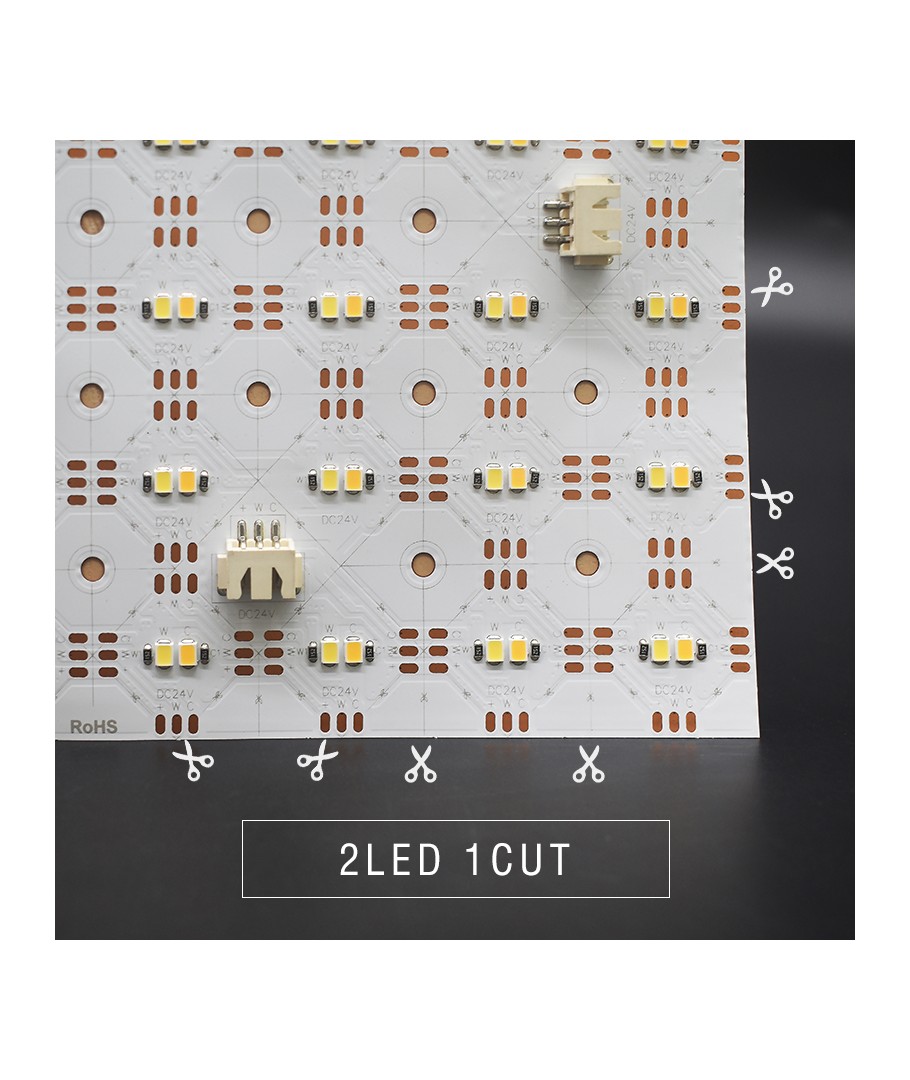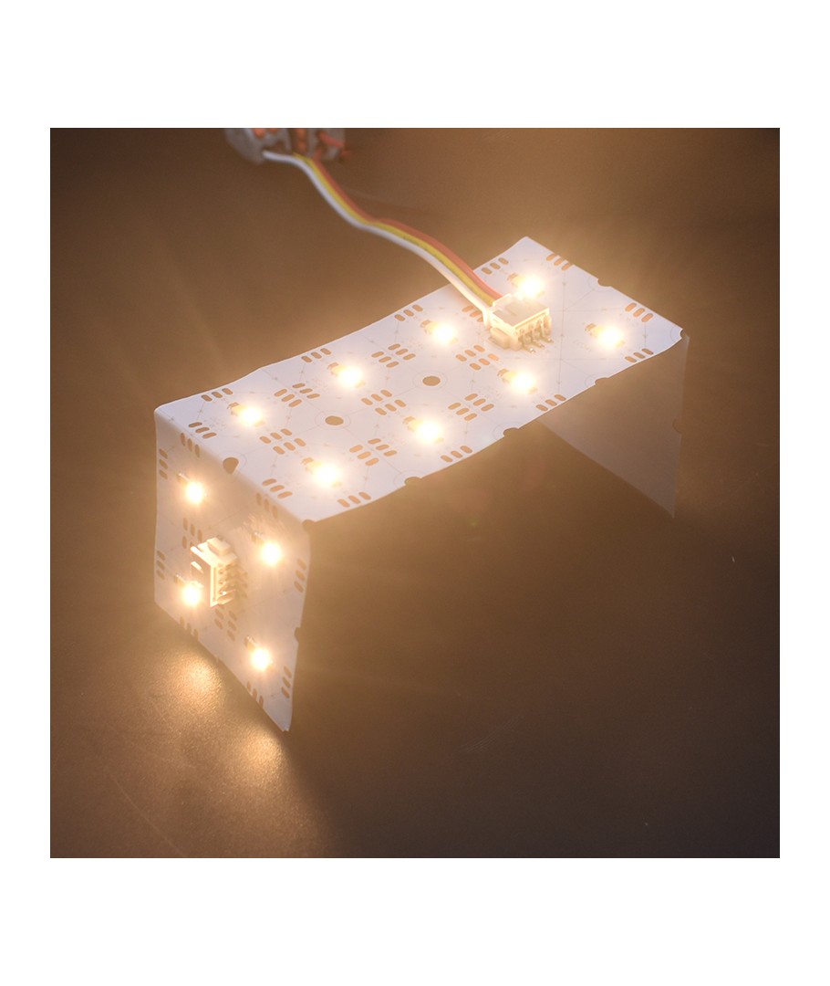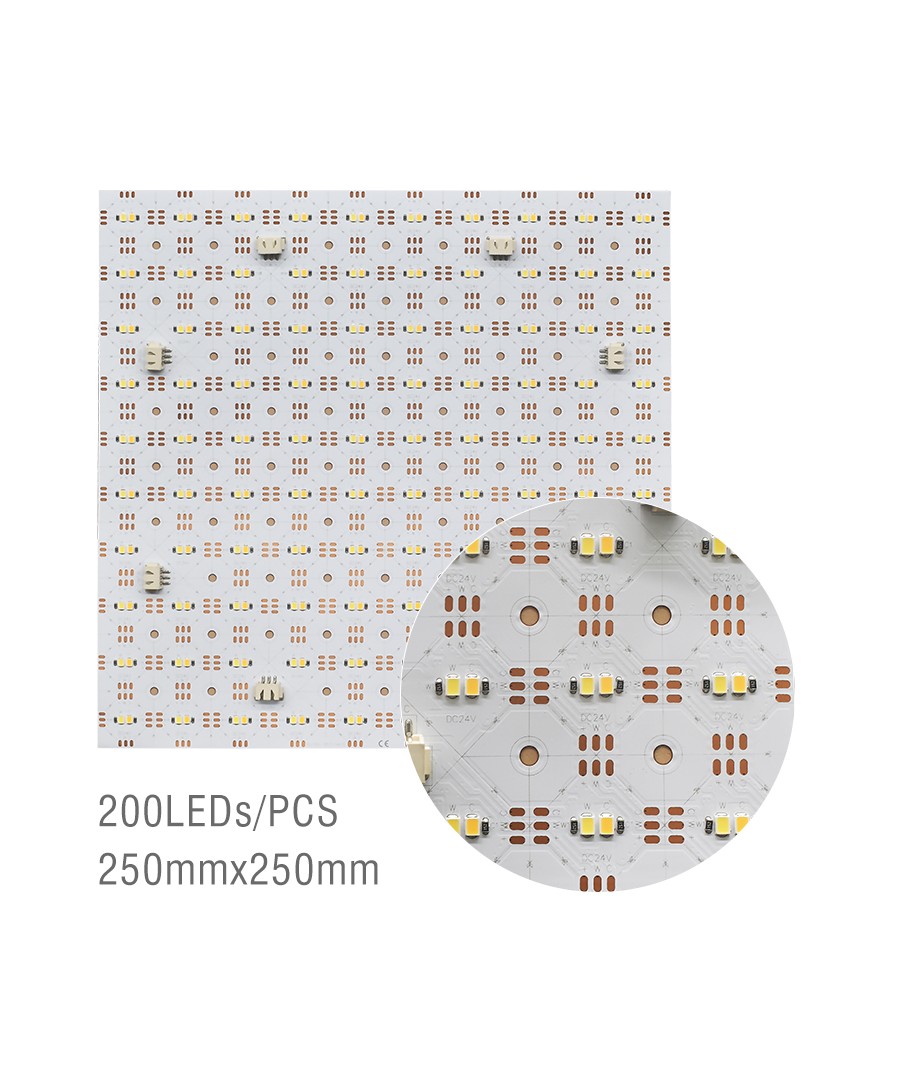 Dimensionerna på arket är kompakta, endast 250 x 8,5 x 250 mm, vilket gör det idealiskt för trånga utrymmen och projekt där flexibilitet är ett måste. Designen innebär att den är vikbar, vilket finns till nytta för anpassningsbara ljuslösningar.
