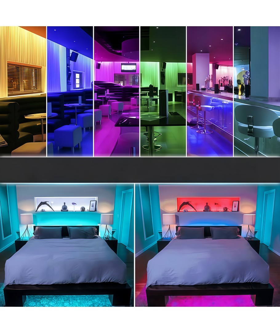 Skapa en inbjudande och färgglad atmosfär med denna mångsidiga LED-strip. Den erbjuder en kombination av RGB och varmvit belysning, vilket ger oändliga möjligheter för att anpassa ljusets färg och ton till just din miljö.
