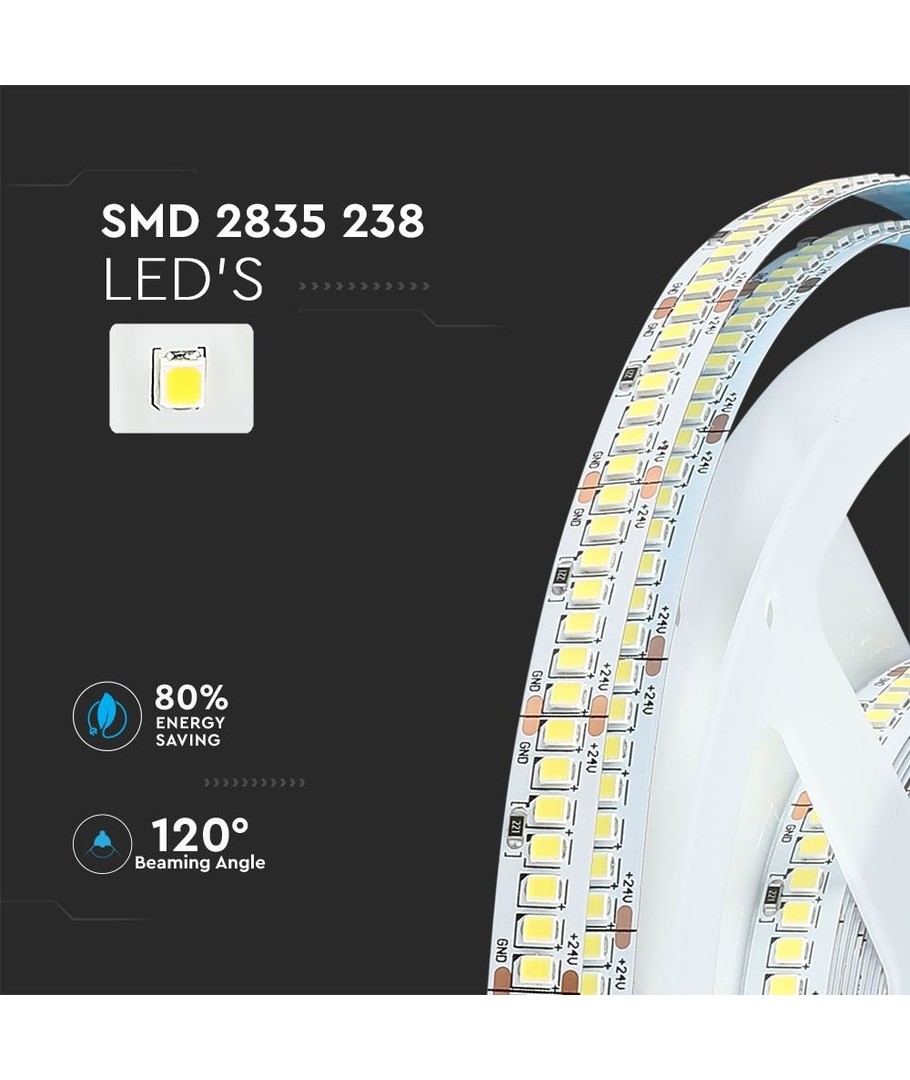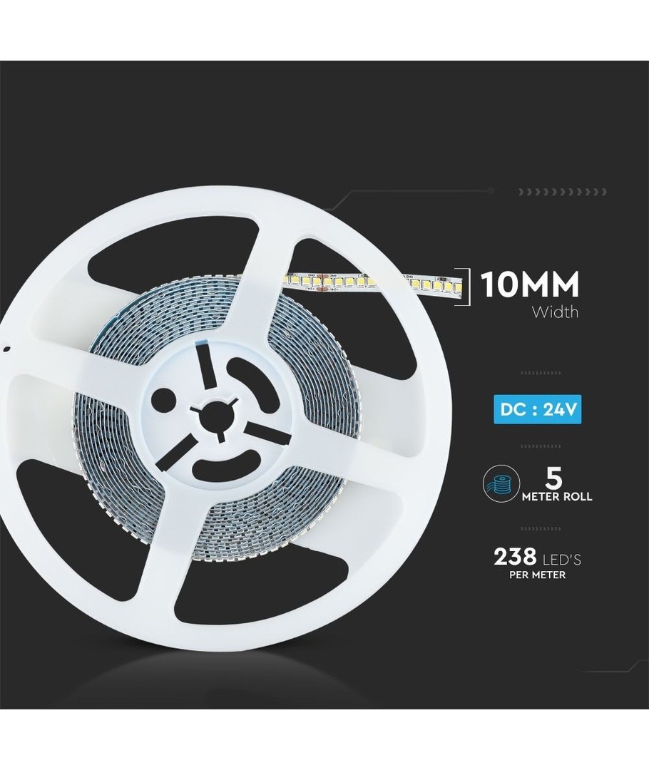 Med 238 LED per meter, erbjuder denna LED-strip hög densitet av lysdioder för extra jämn belysning. Den är även dimbar för att anpassa ljusstyrkan efter ditt behov.