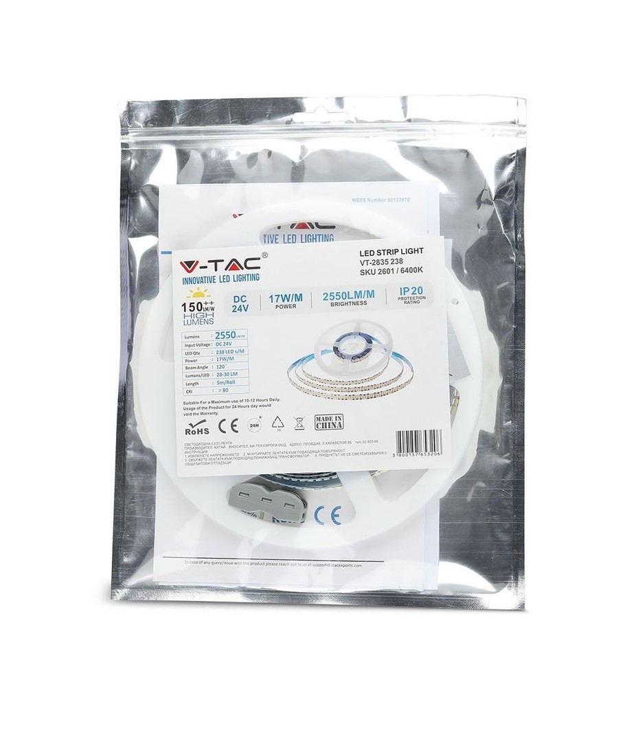 Vår LED-strip är en mångsidig och kraftfull lösning för dina belysningsbehov. Denna 5 meter långa LED-strip har en effekt på 17W per meter och drivs av 24V DC. Med en imponerande ljusstyrka på 2550 lm per meter och en bred ljusvinkel på 120 grader, får du en jämn och effektiv ljusfördelning.