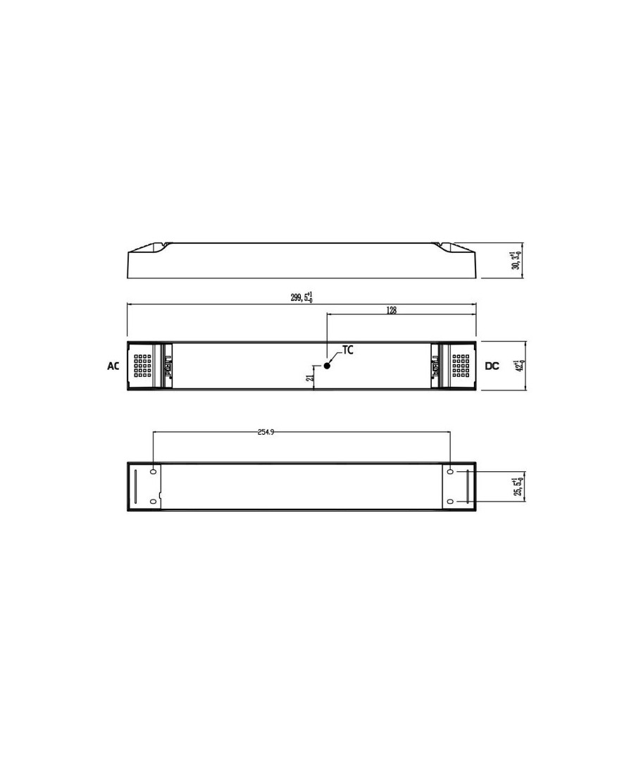 Dess dimensioner är 300 x 30 x 42mm och den är IP20 - ej vattentät.