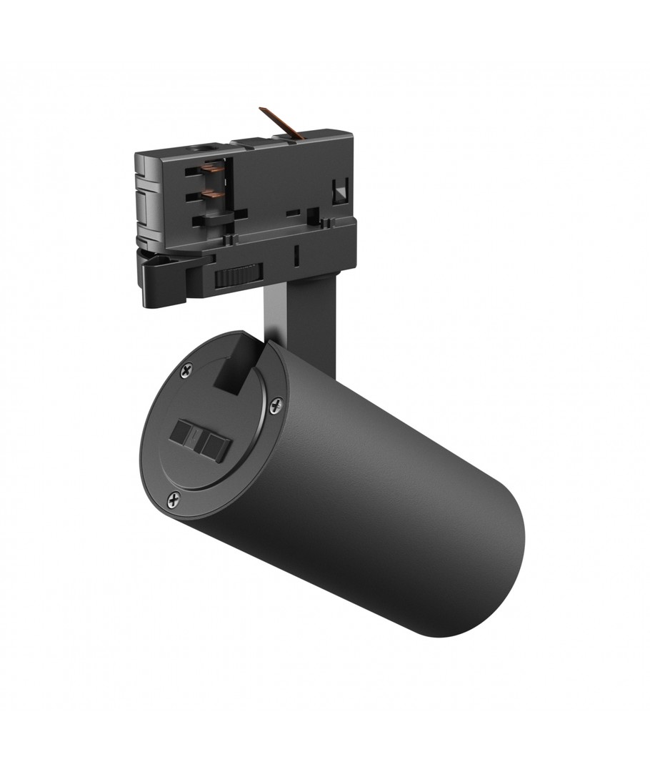 Med ett stilrent och modernt utseende, levereras den i en svart färg som smidigt smälter in i olika interiörer. Trots sin eleganta design, är denna skenspot robust med måtten 134 x 184 x Ø63 mm, vilket gör den kompakt och enkel att installera.