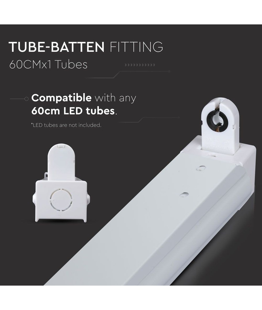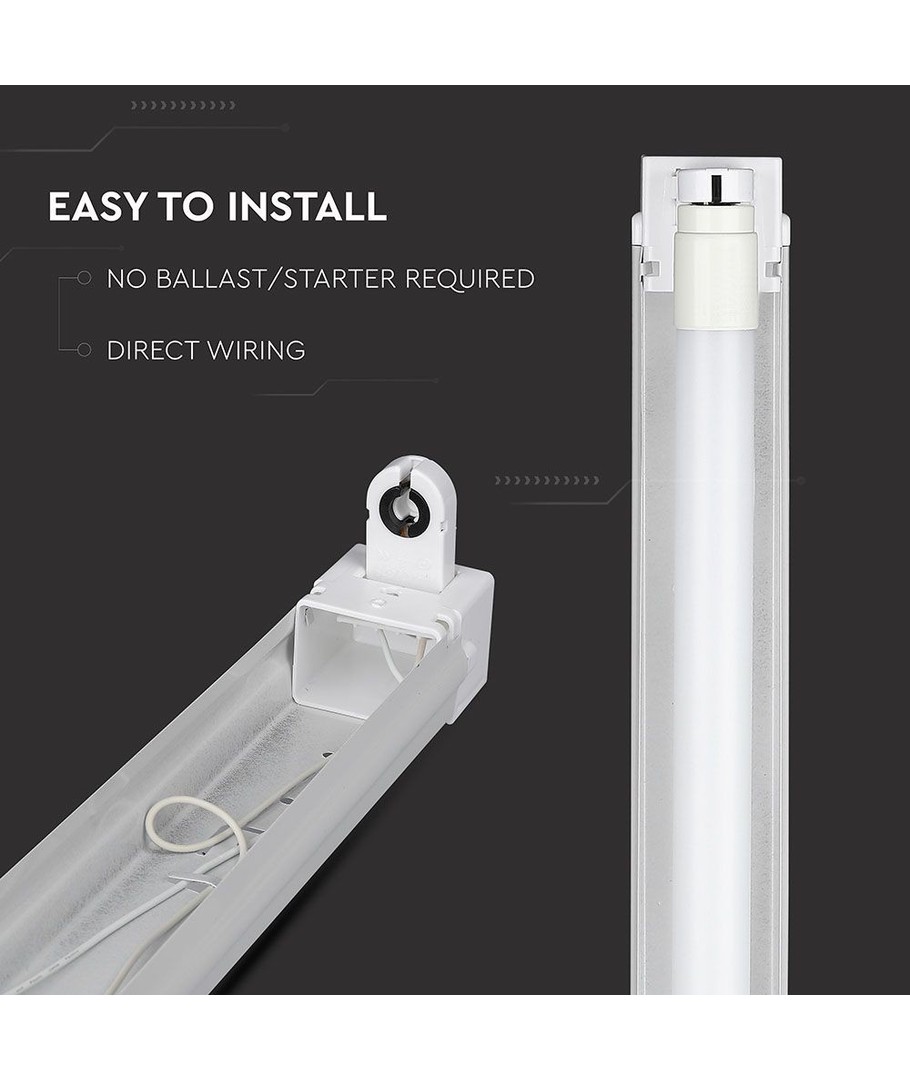 Öppen LED-armatur färdig för montering av T8 LED-lysrör.