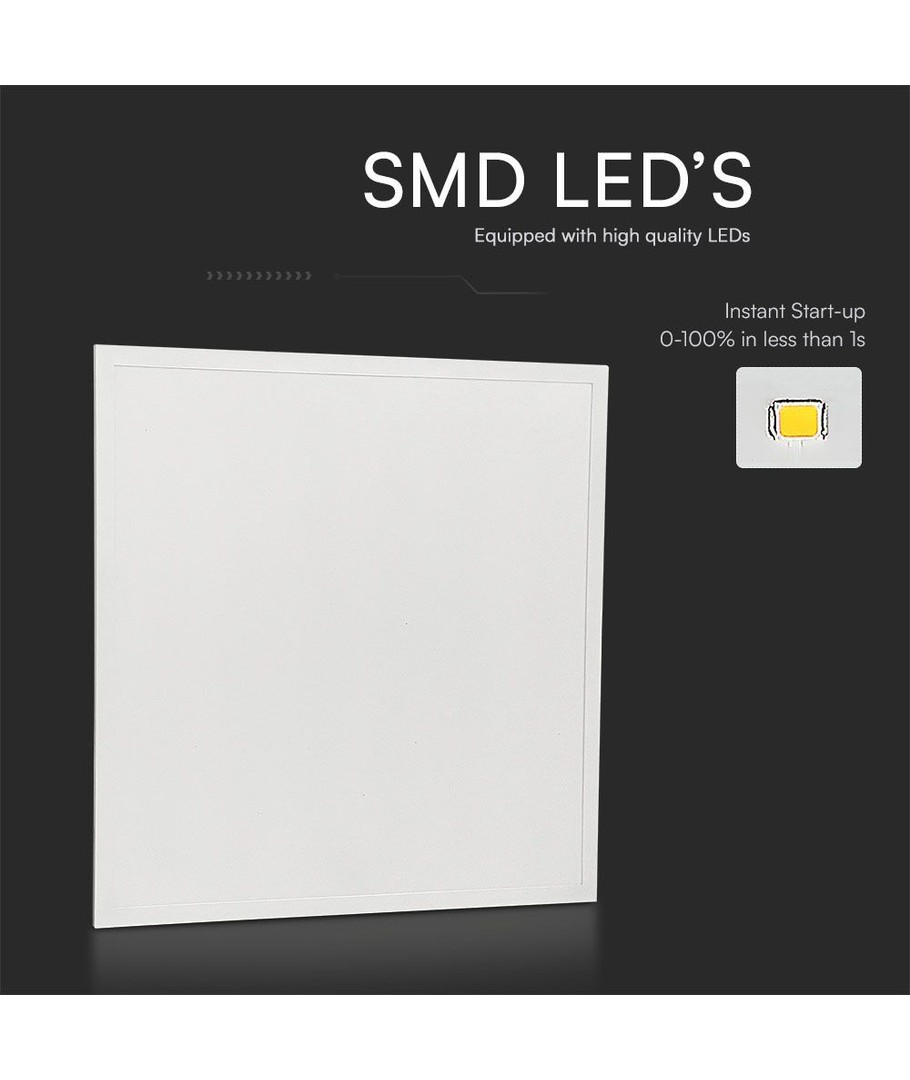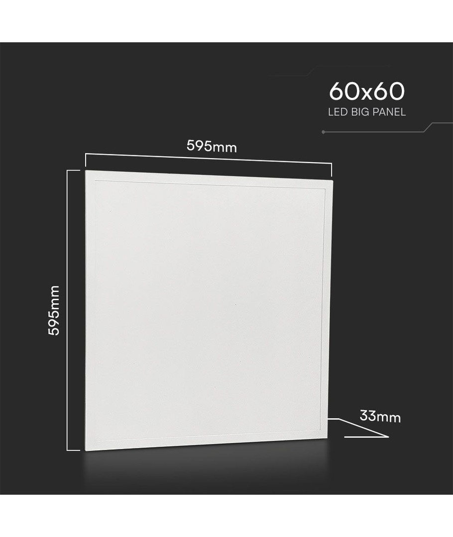 Den vita kanten och de slimmade dimensionerna på 595 x 33 x 595 mm gör att panelen passar in i vilken modern inredning som helst. Notera att panelen har en IP20-klassificering, vilket innebär att den ej är vattentät och därför bäst används i torra inomhusmiljöer.