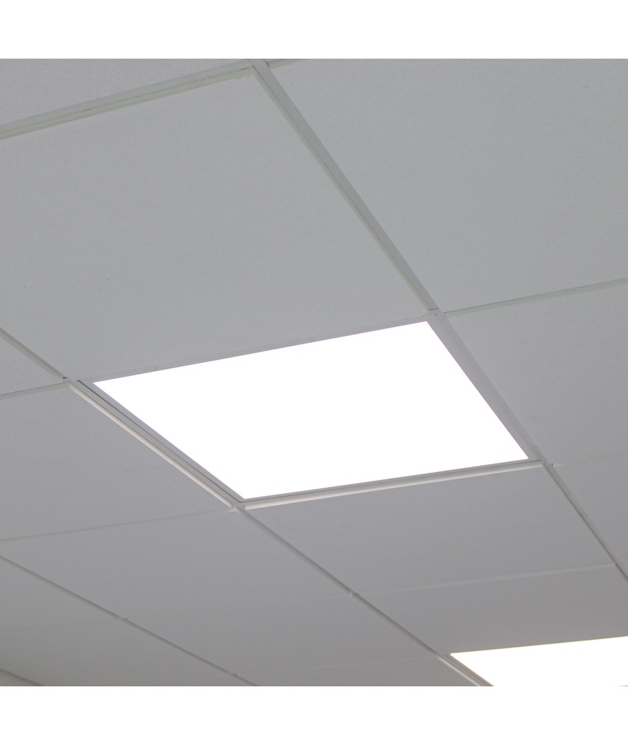 Med dimensioner på 595 x 9 x 595 mm är denna panel både kompakt och effektiv. Den har en diskret vit kant som enkelt smälter in i de flesta miljöer, och levereras med en integrerad ljuskälla.