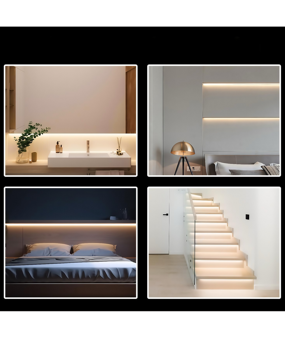 Skapa en modern och elegant atmosfär i ditt hem, bar eller trädgård med denna flexibla belysningslösning. Den passar perfekt för accentbelysning längs med takkanter, trappor eller uteplatser. Den vattentäta konstruktionen gör den även idealisk för temporära installationer vid event eller trädgårdsfester.