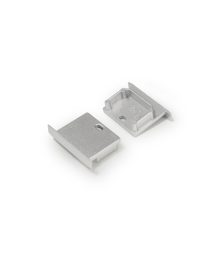Ändstycke LINEA-IN20 är en silverfärgad avslutning med hål för aluminiumprofiler.