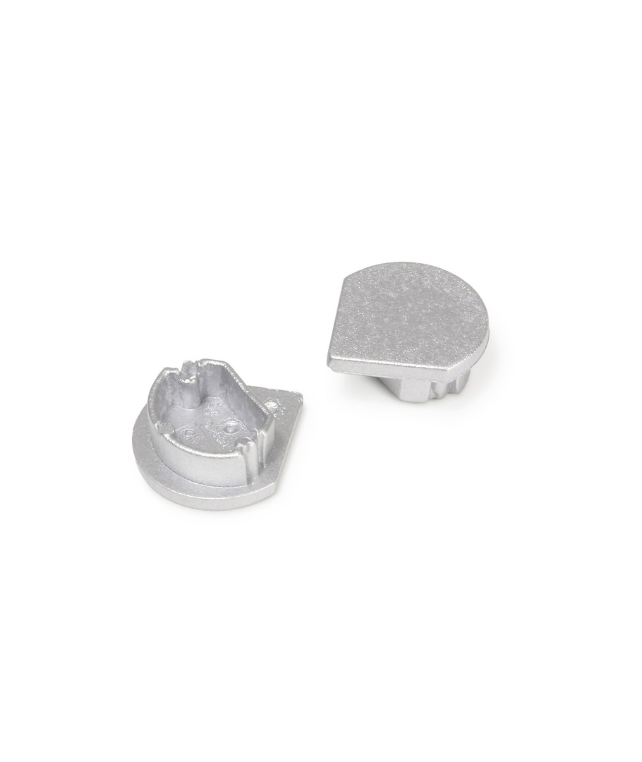 Ändstycke QUARTER10 D är ett silverfärgat tillbehör, designat för att avsluta aluminiumprofiler på ett elegant sätt.