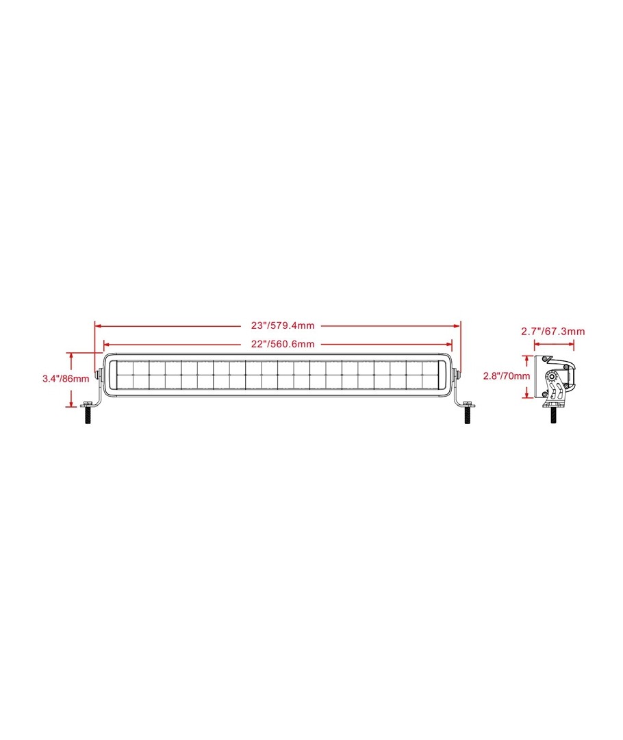 Tack vare dess IP68-klassificerade vattentäthet, kan denna ljusbalk användas i utmanande klimatförhållanden och till och med nedsänkas i vatten upp till 1 meter utan att påverka dess funktionalitet. Den robusta konstruktionen gör den till en perfekt lösning för äventyr på väg och terräng.