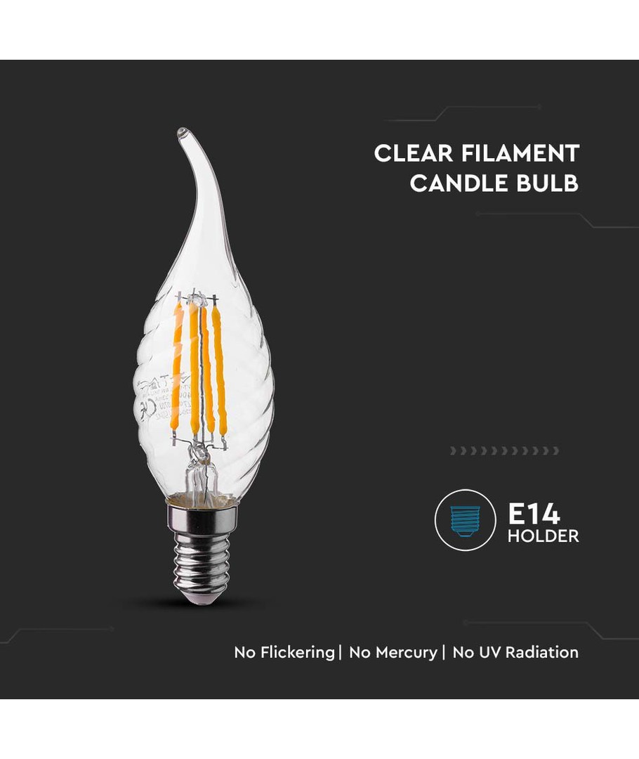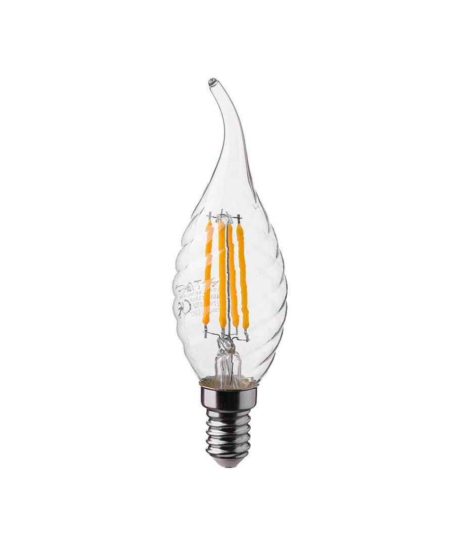 Den unika E14 4W LED flamlampa kombinerar estetik och funktionalitet med sin flamlika glasdesign och twist, som skapar en mysig atmosfär.