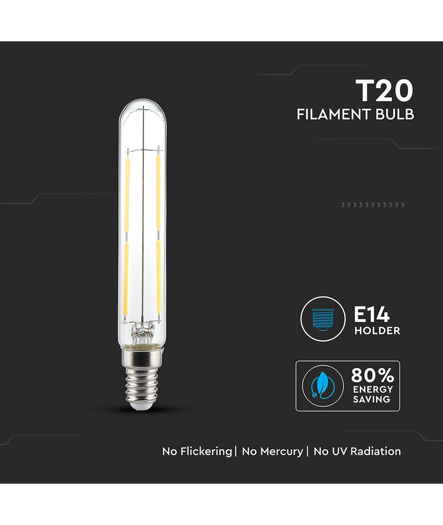 Upptäck en kraftfull och energieffektiv ljuslösning med T20 VT-2204 LED glödtrådslampa. Den erbjuder en imponerande ljusstyrka på 400 lm med endast 4W energiförbrukning och är utrustad med en E14 liten sockel, vilket gör den till ett perfekt val för många olika armaturer.