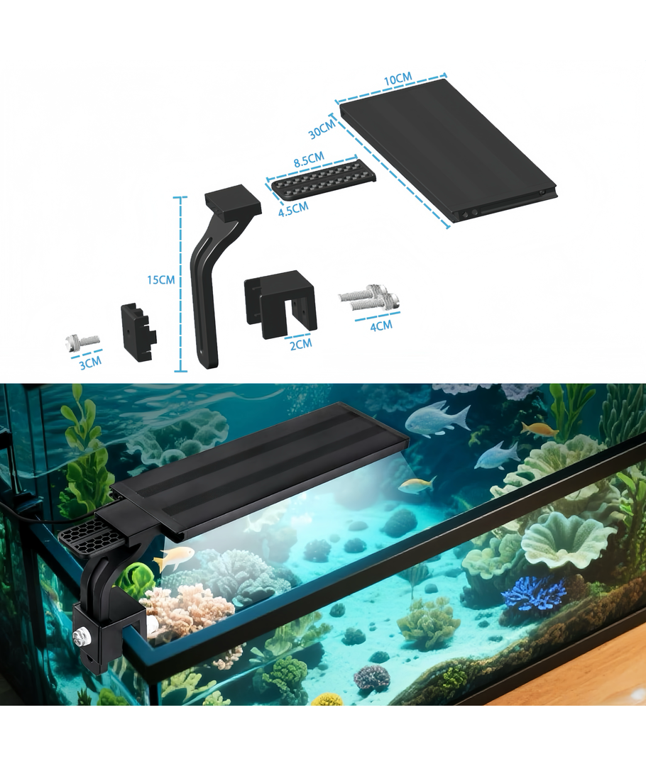 Akvarielampan är inte bara funktionell utan också designad för att vara enkel att använda med sin eleganta och kompakta design. Oavsett om du vill främja växters tillväxt eller bara förhöja akvariets estetik, passar denna lampa perfekt för akvarier upp till 30 cm. Ge dina färgglada fisksamhällen en lysande och uppfriskande miljö med denna moderna och hållbara LED-lösning.