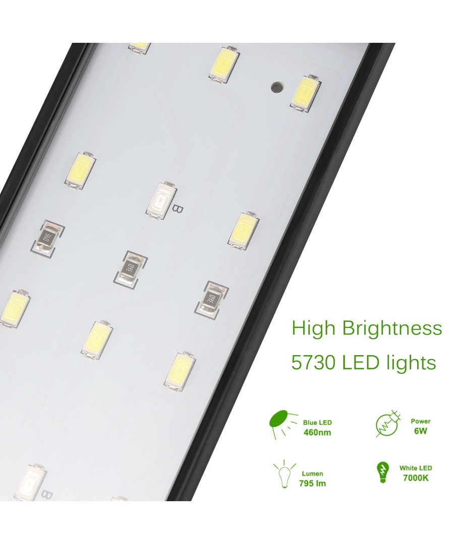 Gör den smarta investeringen i ett långvarigt och effektivt belysningssystem för ditt akvarium. Denna 19,5 cm armatur gör det praktiskt att skapa och bibehålla den ideala akvariemiljön, så dina vattenlevande vänner kan frodas i ett lugnande och vackert ljus.