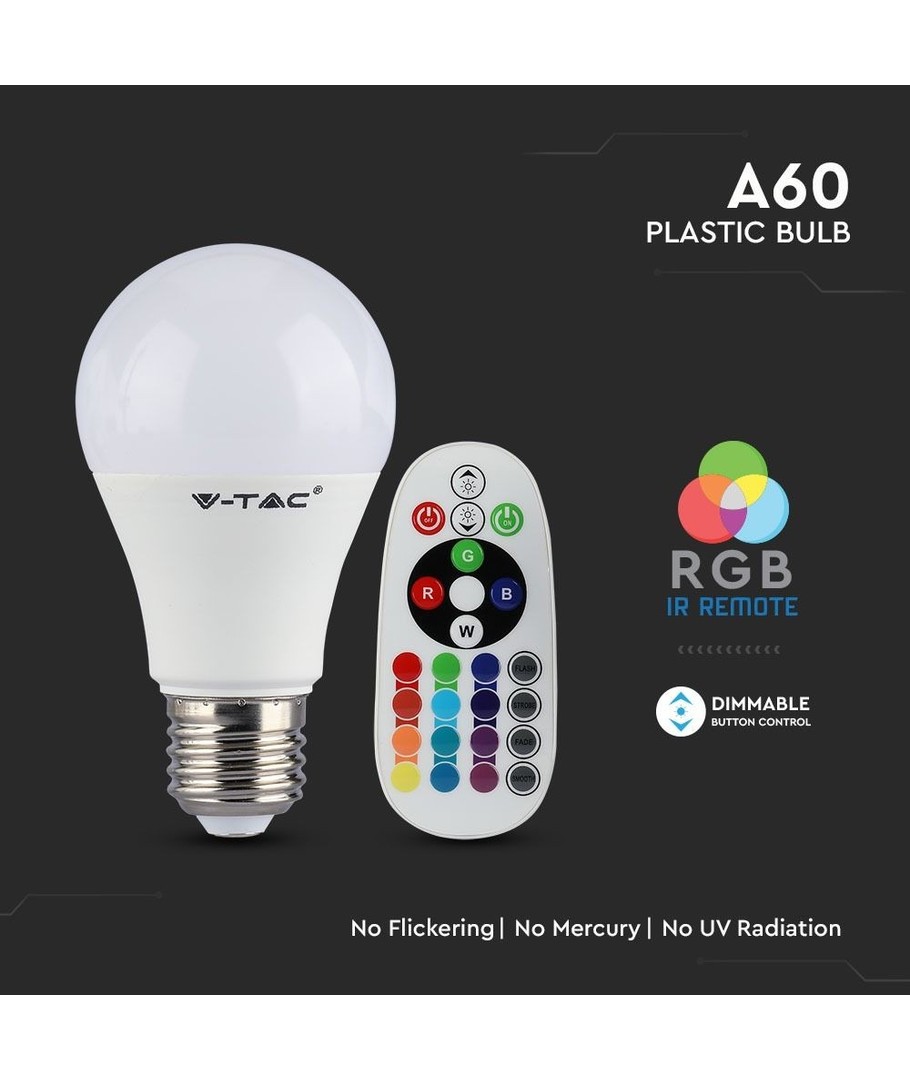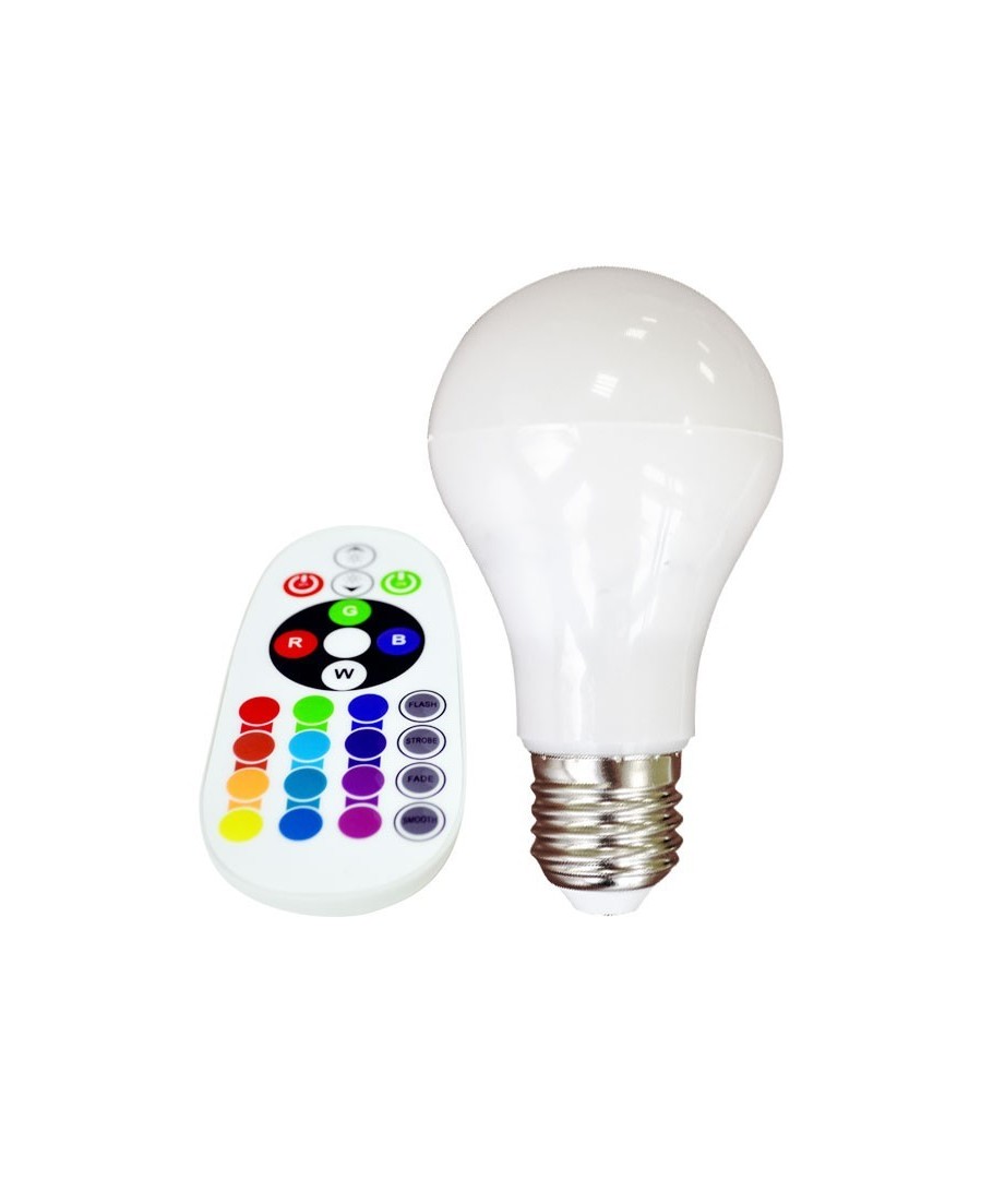 5 st. RGBW E27 glödlampa med fjärrkontroll, där man kan byta färg.
