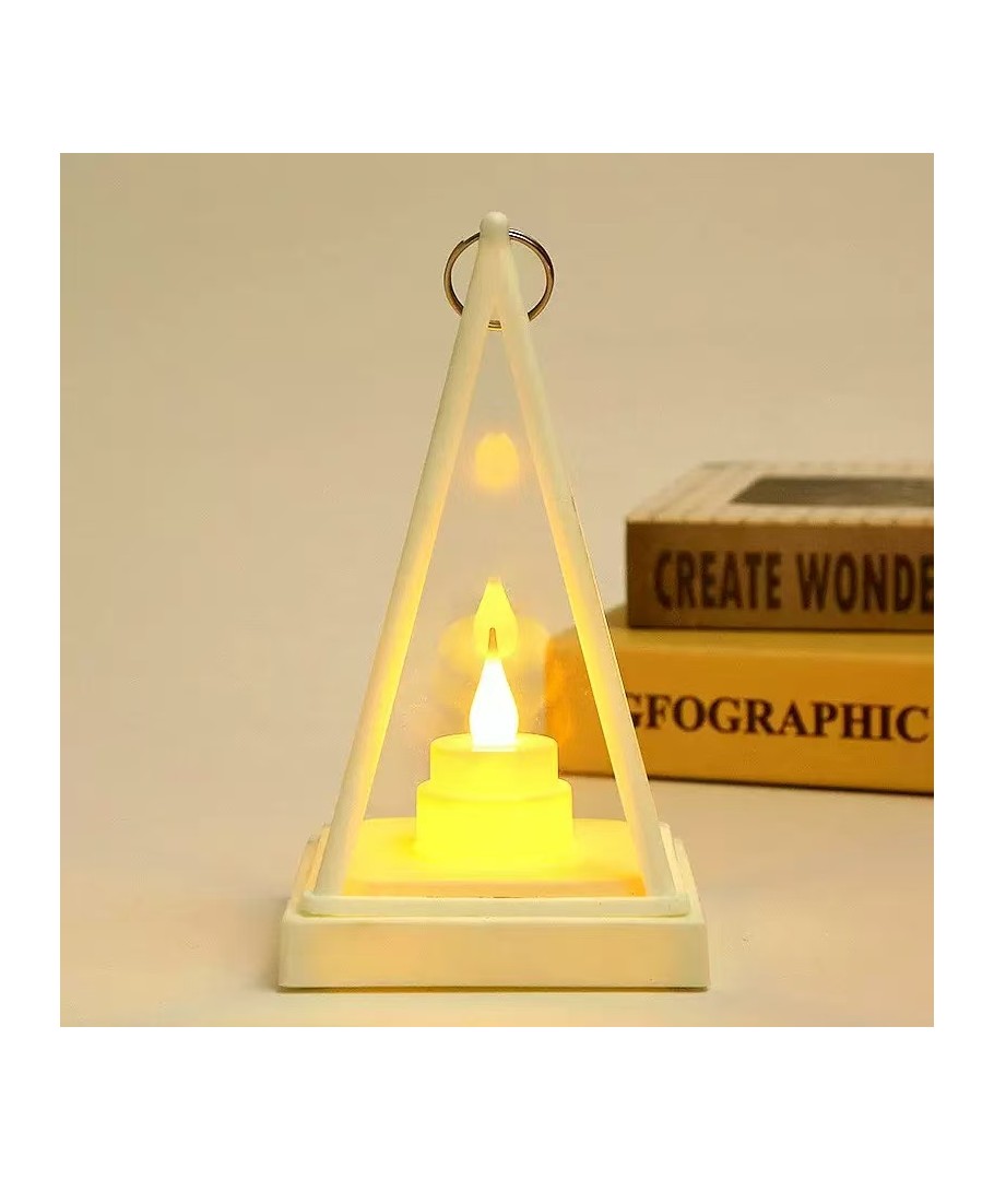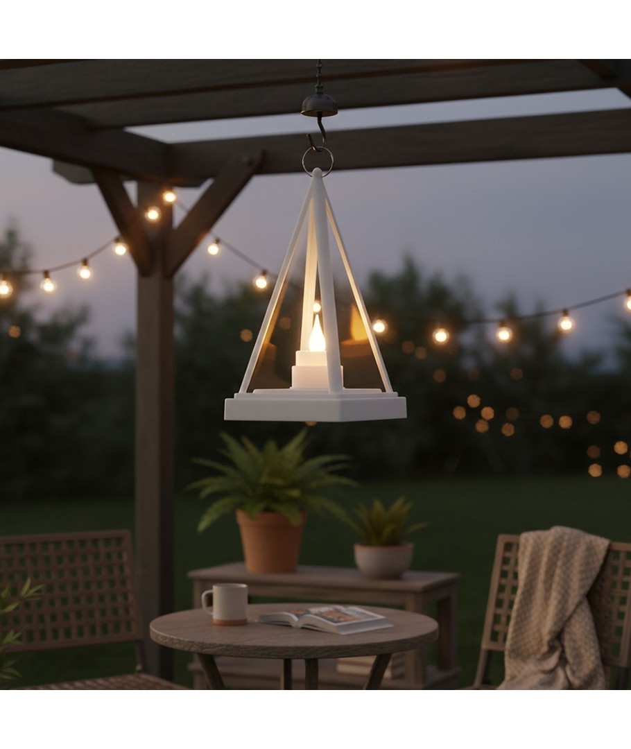Den trekantiga LED-lanternan i vitt är ett mångsidigt och stilfullt ljusval för både inomhus- och utomhusbruk, som säkerställer en mysig stämning.