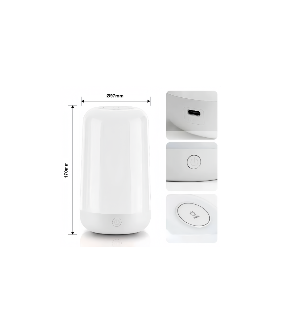 Förvandla atmosfären i ditt hem med denna stilrena och mångsidiga bord-/nattlampa. Den är uppladdningsbar och har en effekt på 5W, vilket kombinerar energieffektivitet med tillräckligt med ljuskraft för de flesta inomhusbehov.