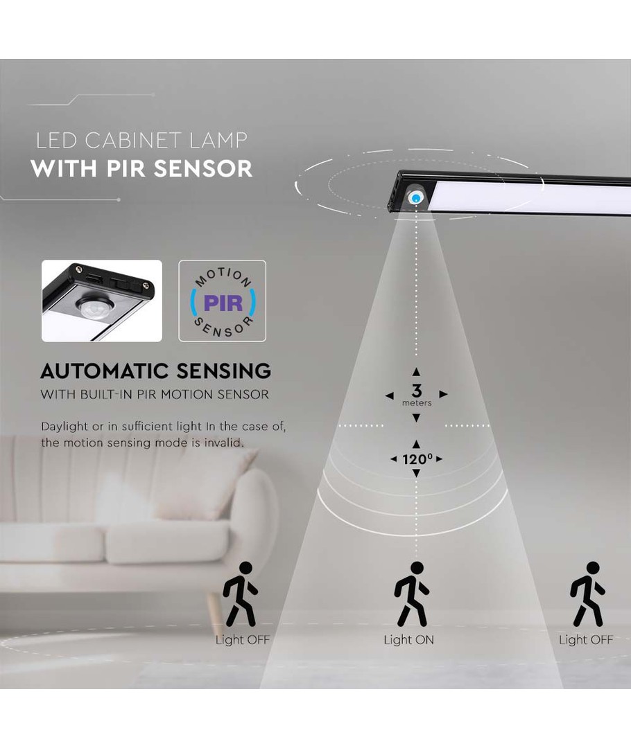 Denna 2,5W LED skåpbelysning är idealisk för att skapa en funktionell och eleganta belysning i olika utrymmen. Med dess inbyggda PIR sensor tänds belysningen automatiskt vid rörelse, vilket gör den både praktisk och energisnål.