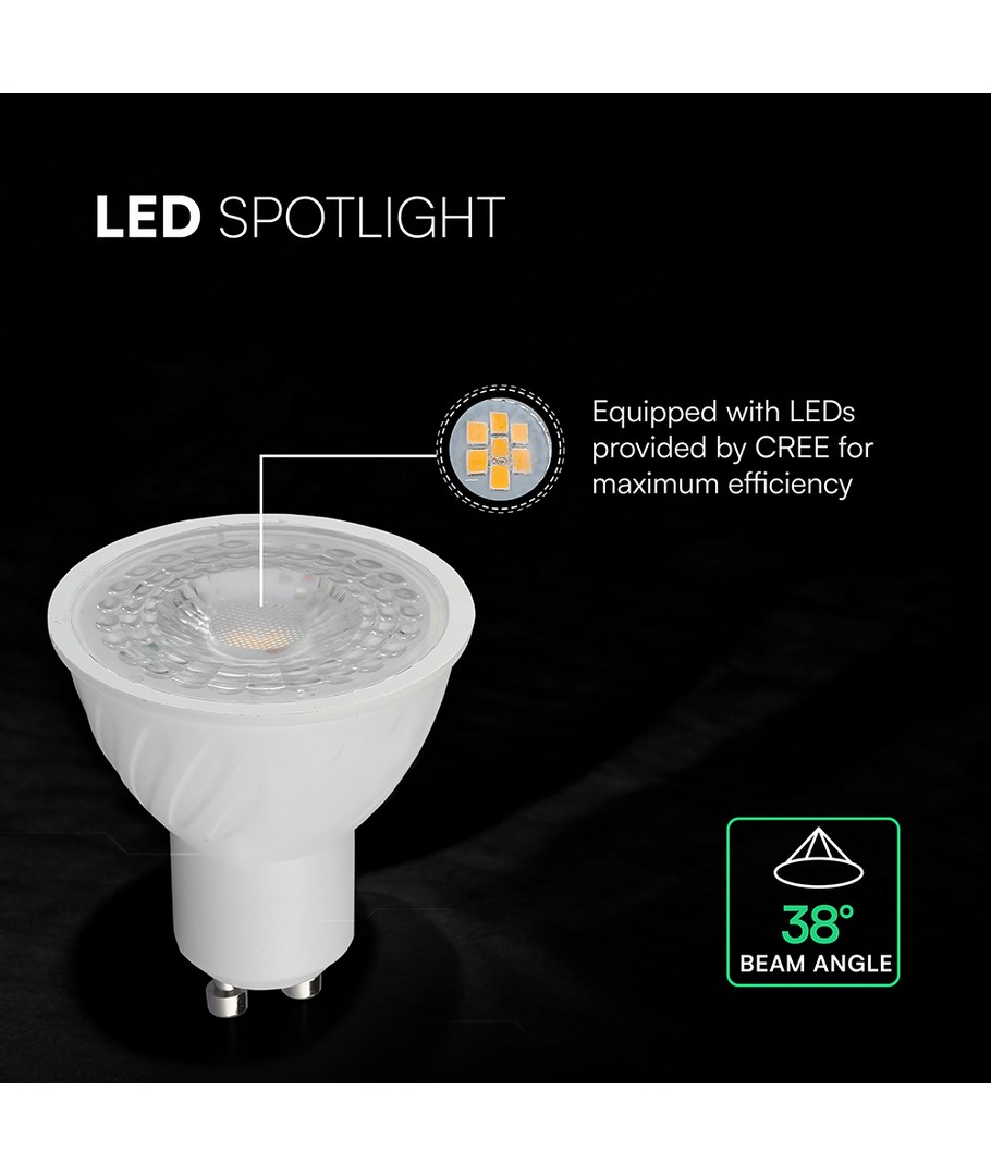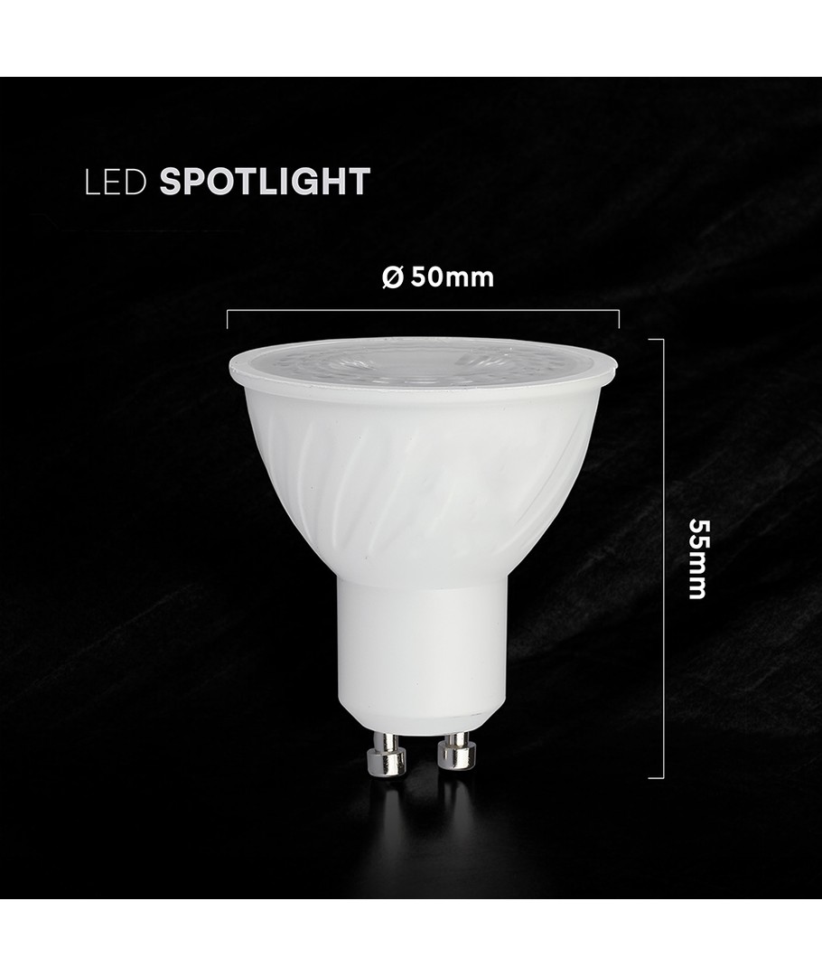 Denna spotlight erbjuder effektiv belysning med en låg effekt på 4,5W och är utrustad med en GU10 sockel. Perfekt för hemmet eller arbetsplatsen där du önskar ett kontrollerat och fokuserat ljus.