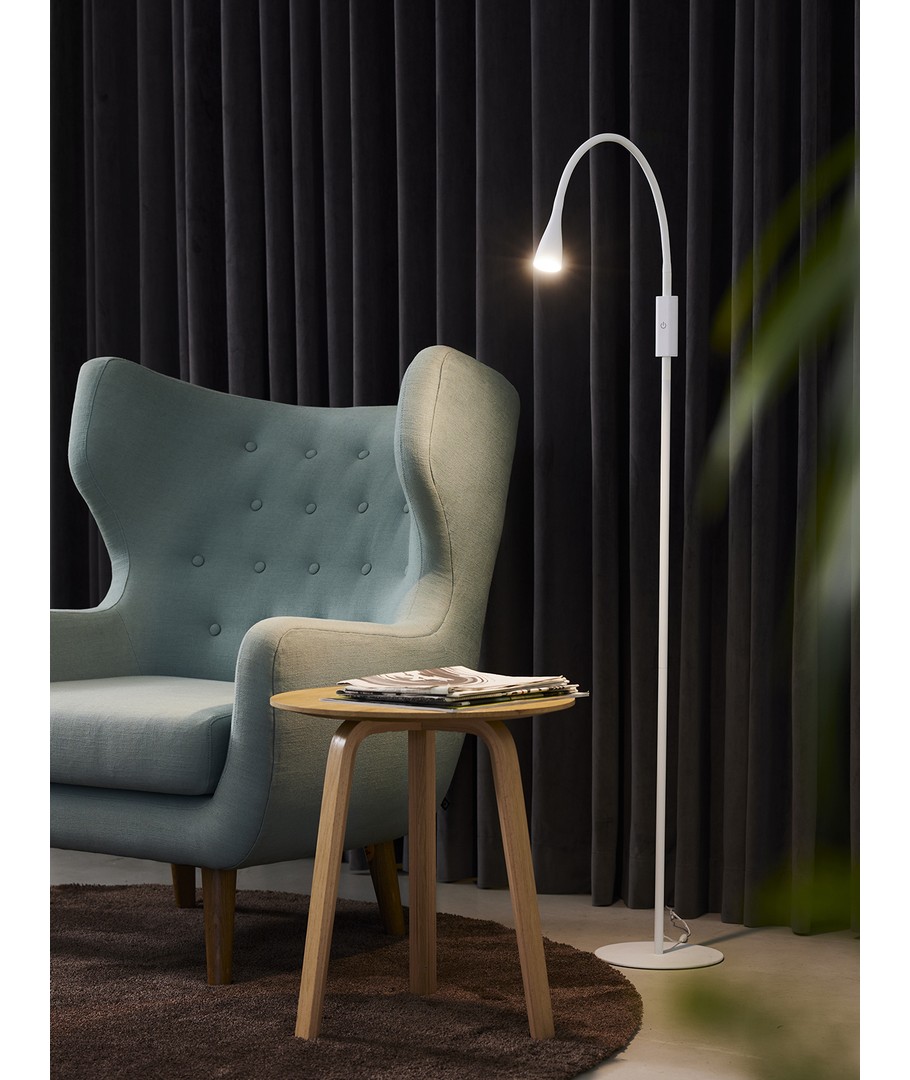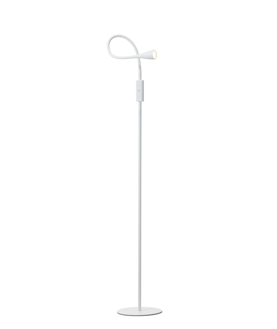 Vit LED golvlampa från Nielsen Light med namnet Twist i en snygg och enkel design. Lampan har inbyggd Touch dimmer på själva stången, vilket gör den enkel att använda. På/av finns i samma strömbrytare som dimmern.