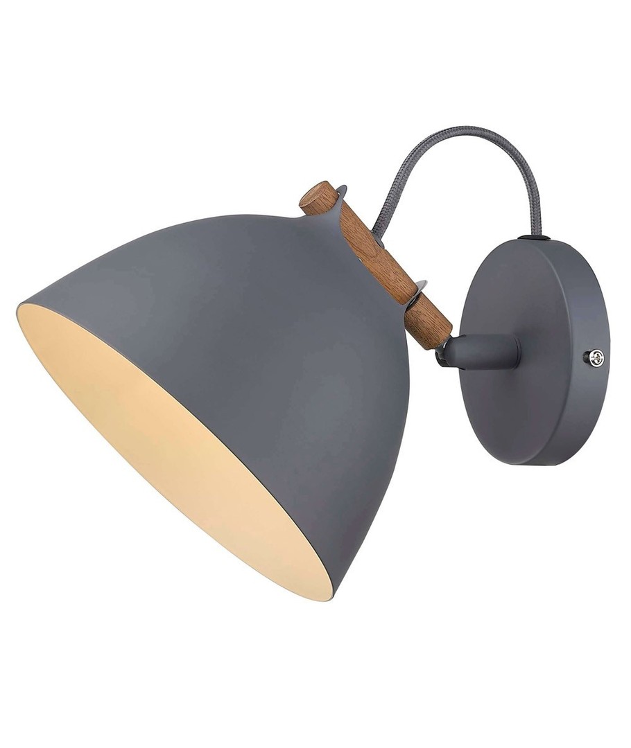 Den grå ytan på denna vägglampa ger en tidlös känsla medan trädelen tillför en naturlig värme. Kombinationen av dessa två element gör lampan perfekt för att integrera i olika interiörer, oavsett om du har en modern eller traditionell stil.