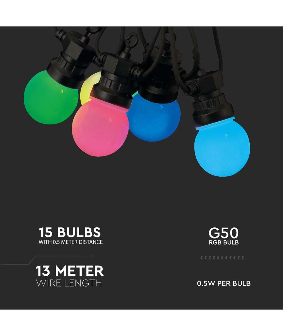Ge ditt hem eller din trädgård ett stämningsfullt och färgglatt sken med denna 7 meter långa LED ljusslinga. Den är perfekt för att skapa en atmosfär som passar både vardag och fest.