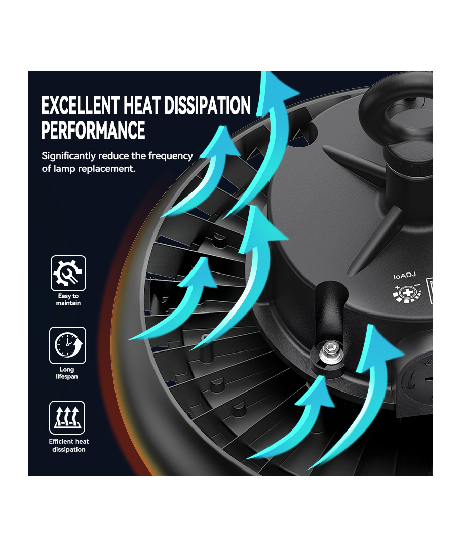 Den integrerade ljuskällan och professionella kylningen försäkrar minimalt ljusfall och en pålitlig funktion över tid. Dess kompakta dimensioner (110 x Ø255 mm) möjliggör enkel installation utan att kompromissa med prestanda.
