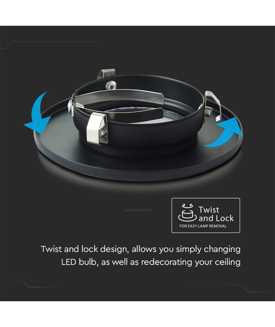 Sats med 10 st. V-Tac infällda spotlights med GU10-sockel i svart