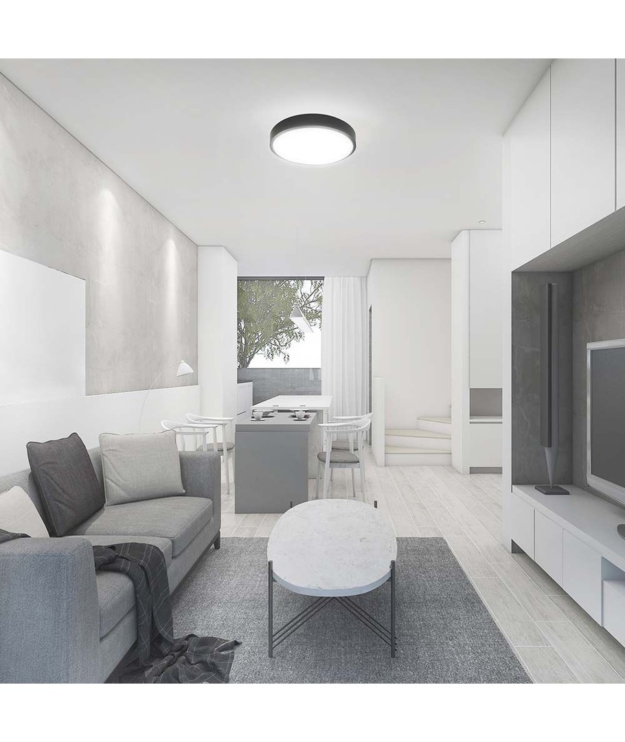 Designen är både stilren och funktionell med en diameter på 350 mm och en höjd på 61 mm. Tack vare IP44-klassificeringen är lampan perfekt för områden som utsätts för fuktig luft och vattenstänk, vilket gör den idealisk för användning i badrum och kök.