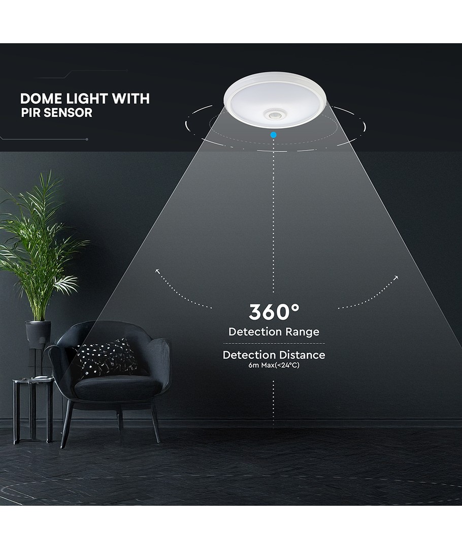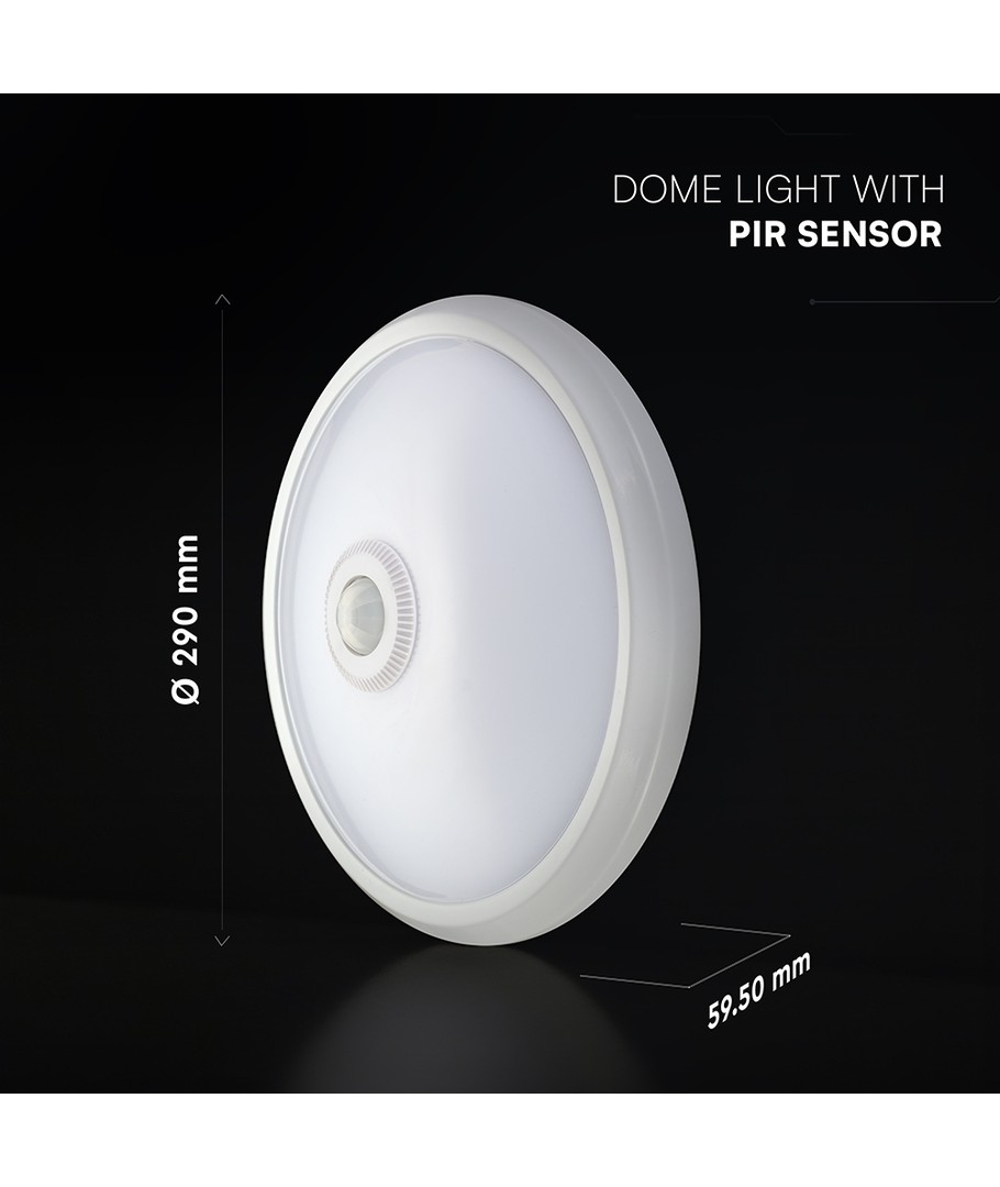 Förvandla ditt utrymme med en belysningslösning som kombinerar design med funktionalitet. Denna kupollampa är utrustad med en inbyggd PIR-sensor och är perfekt för platser där ljus automatiskt behöver justeras beroende på rörelse.