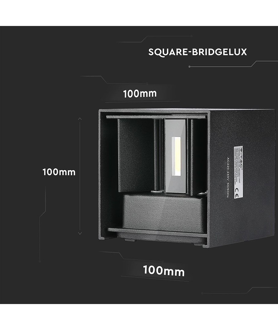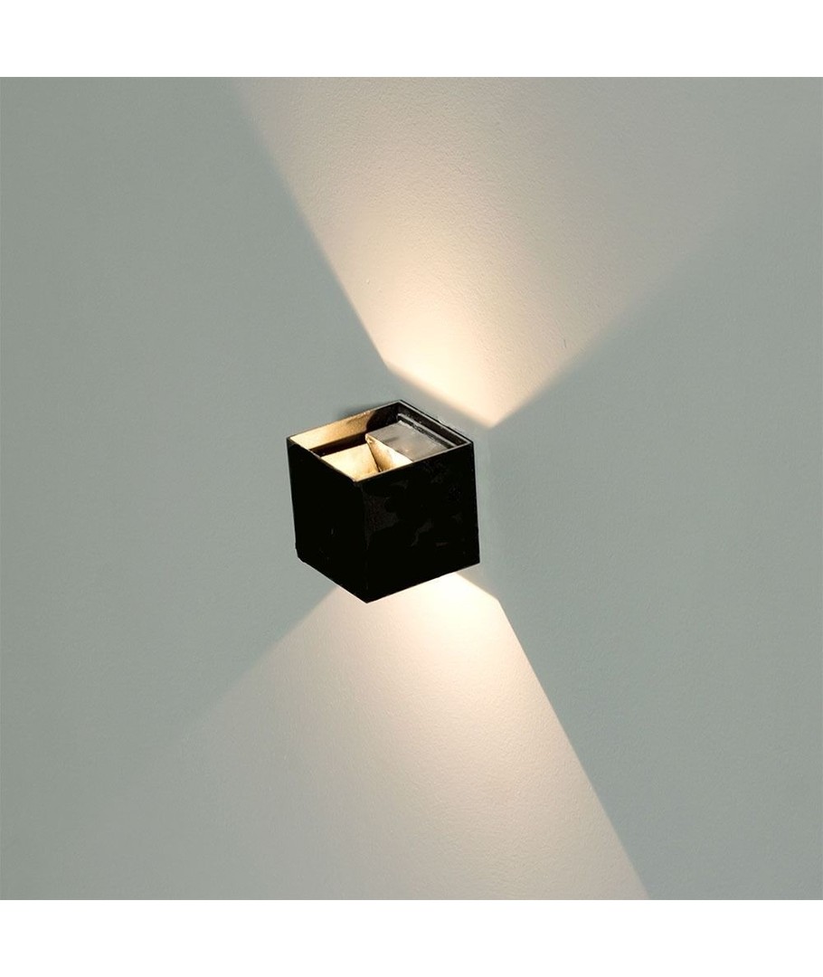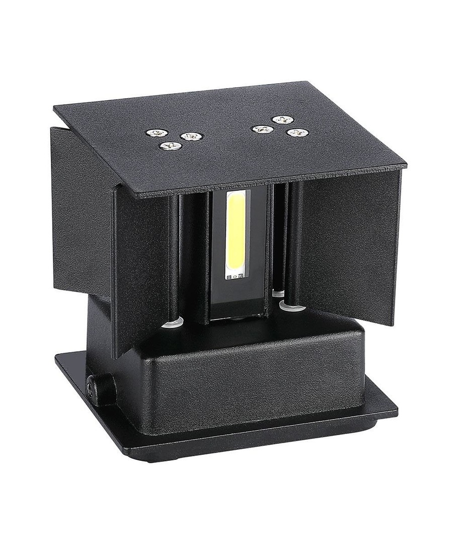 Med dess kompakta dimensioner på 100 x 100 x 100 mm och stilrena svarta finish, är denna vägglampa inte bara praktisk utan även en stilfull del av din utomhusinredning. Lampan har en integrerad ljuskälla och ansluts smidigt till 230V.