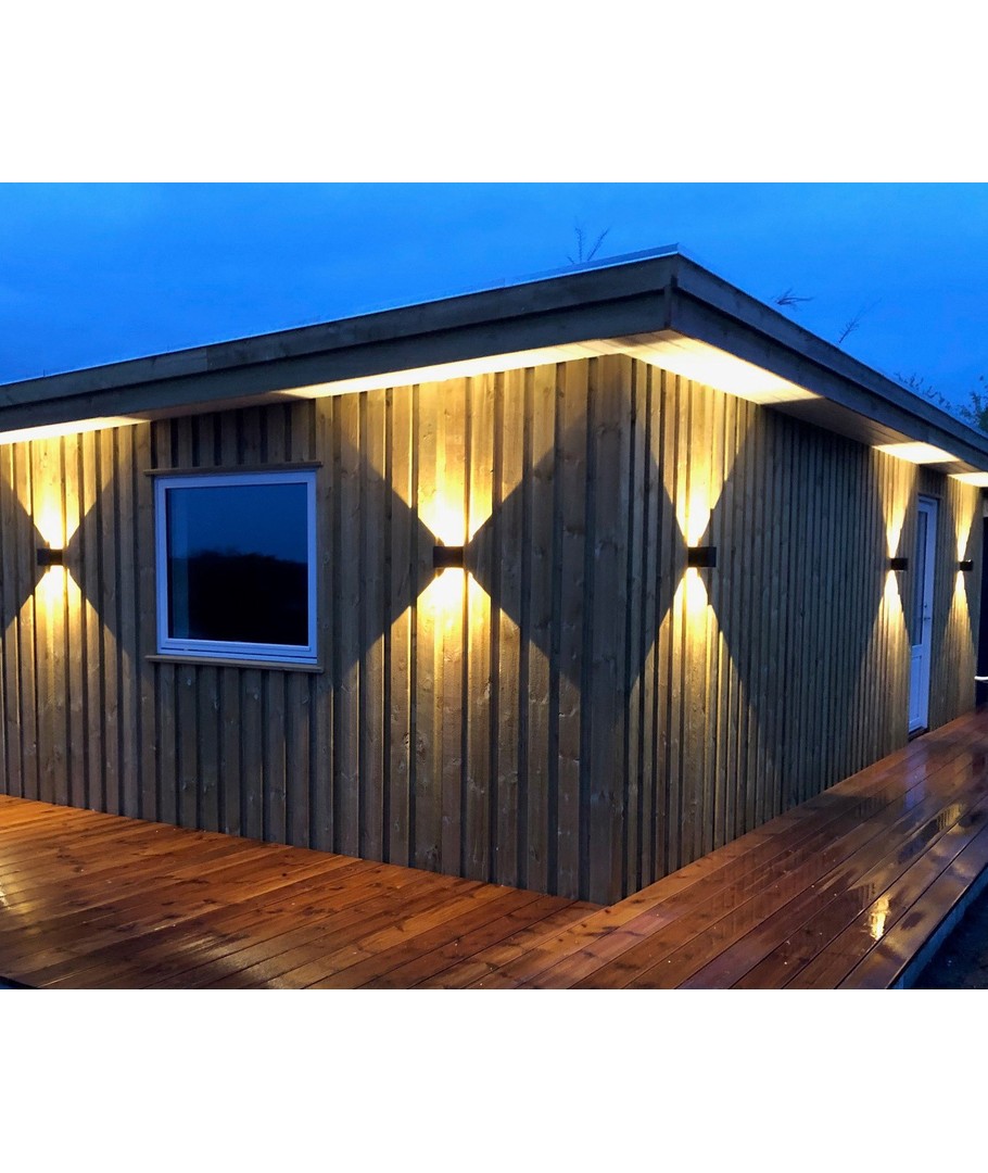 Huvudfunktioner:Lampans dimensioner mäter kompakta 100 x 100 x 100 mm, vilket gör den smidig att placera på fasader eller trädgårdsmurar utan att kompromissa med estetik eller funktion.