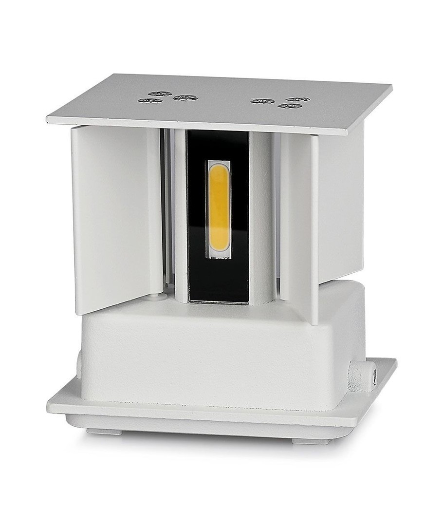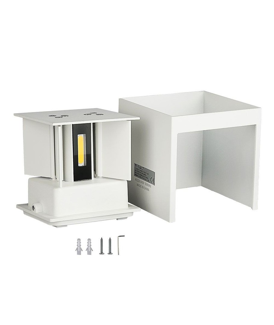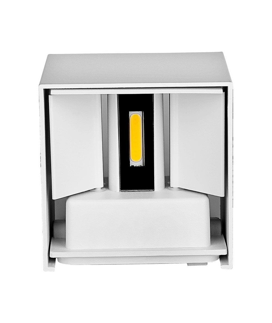 Snygg modern vit vägglampa med enkel design, som ger ett mycket vackert ljus över och under själva lampan. Det finns möjlighet att justera spridningen oberoende av ljuset både ovanför och nedanför, från 10-120 grader.