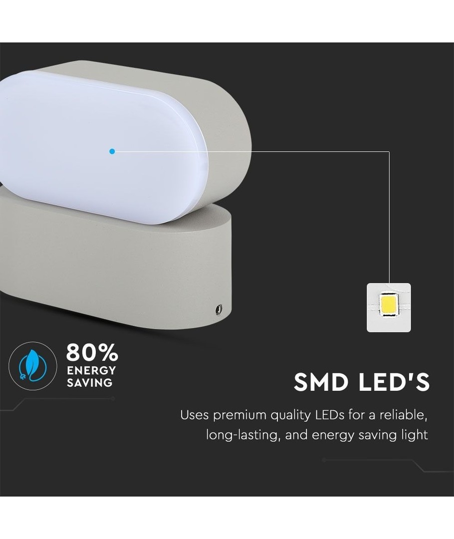 V-Tac 6W LED grå vägglampa är ett perfekt val för att uppnå ett naturligt, vackert ljus.