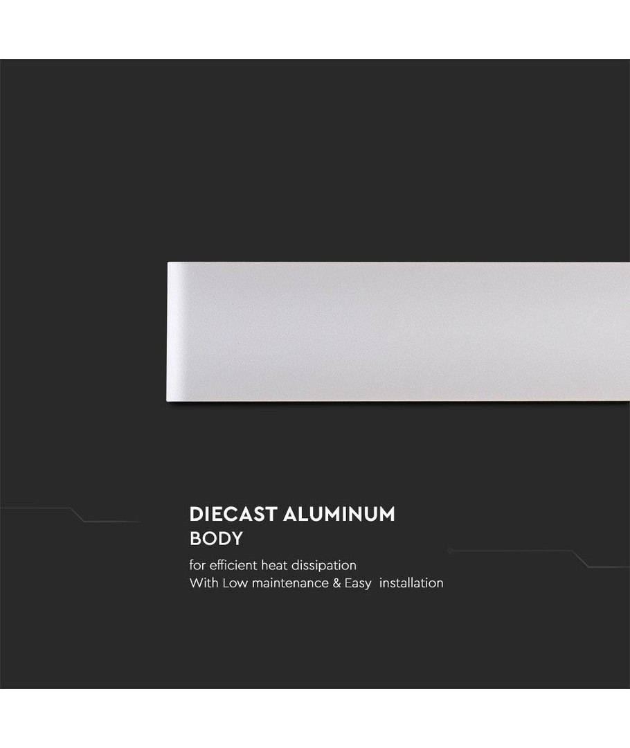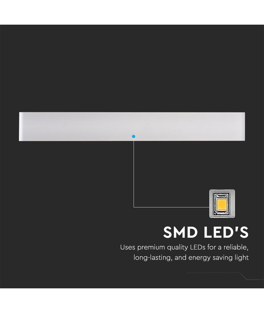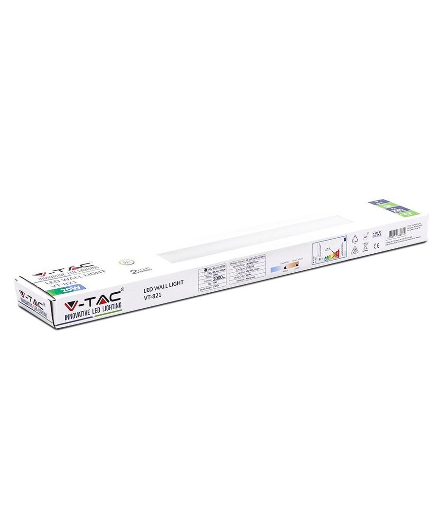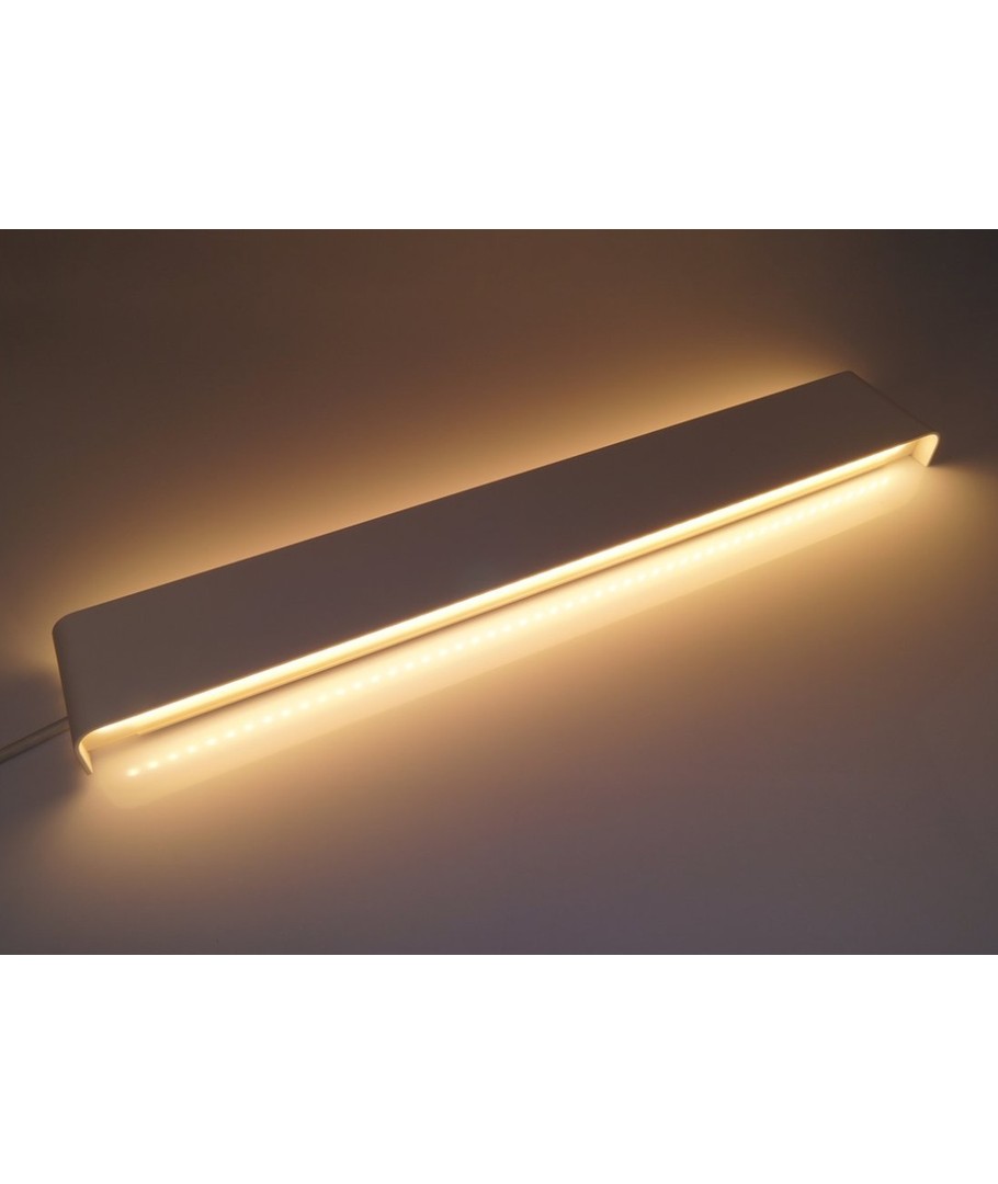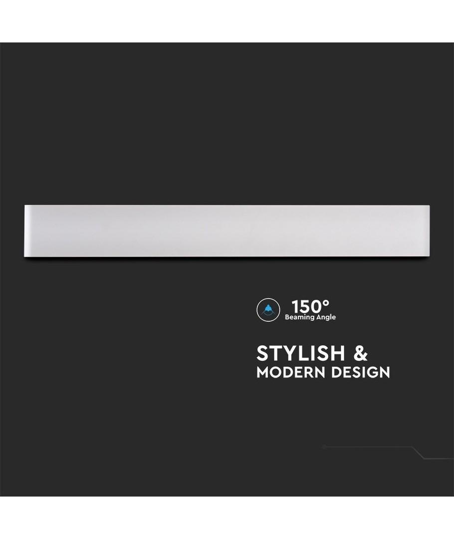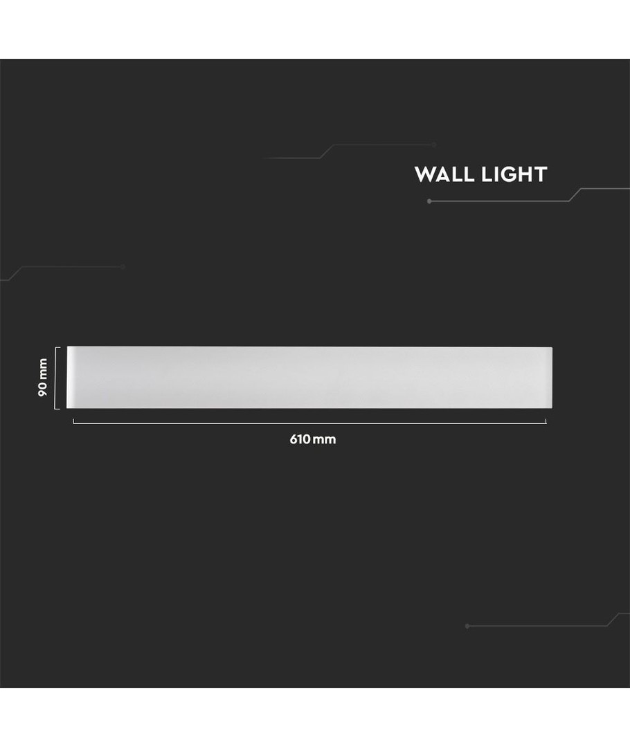 Ljusfärg:Designen är både stilren och funktionell med måtten 610 x 90 x 35 mm. Lampan är konstruerad för att tåla utomhuselementen med en IP44-klassificering, vilket innebär att den är skyddad mot fuktig luft och vattenstänk på framsidan.