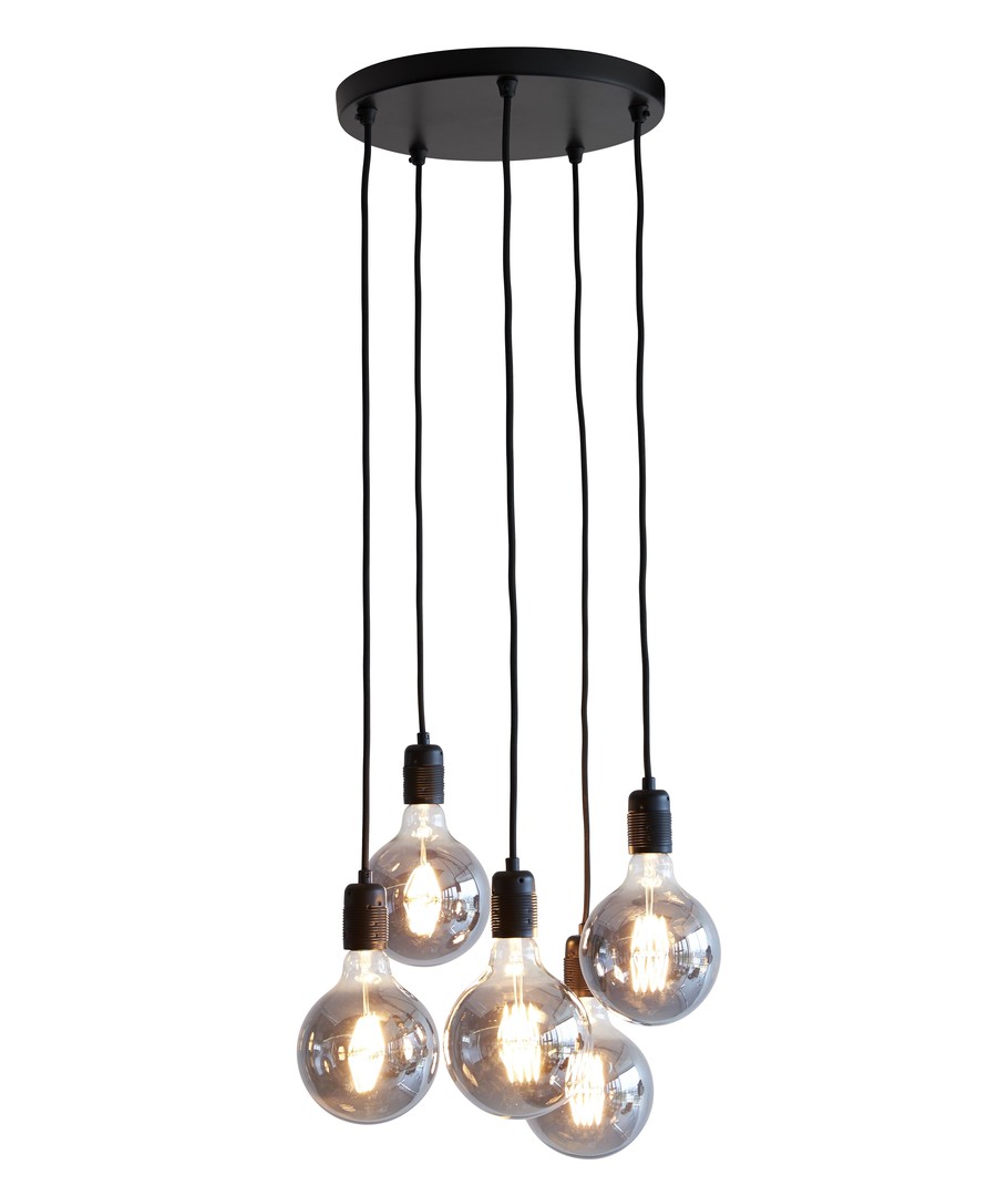 Pryd hemmet med ett kluster av 5 valfria lampor med denna pendel från Nielsen Light, med 5 st. E27-socklar i svart.