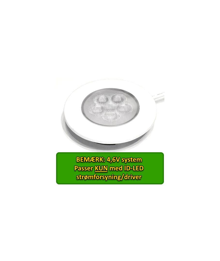 ID-LED Indbygningsspot i mat hvid til lavvolt (350mA) med indbyggede LED lys