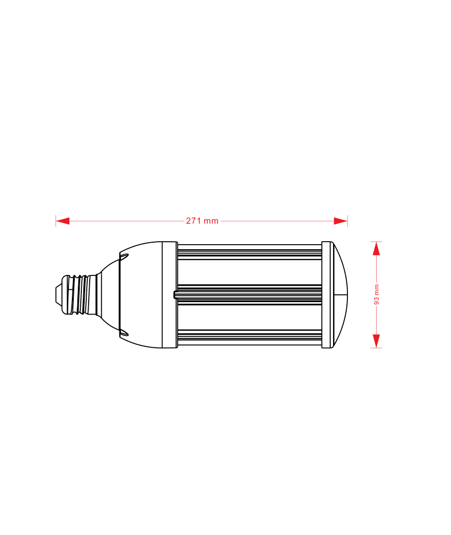 Dimensioner: 271 x Ø93 mm, vilket gör den kompatibel med en mängd olika armaturer.