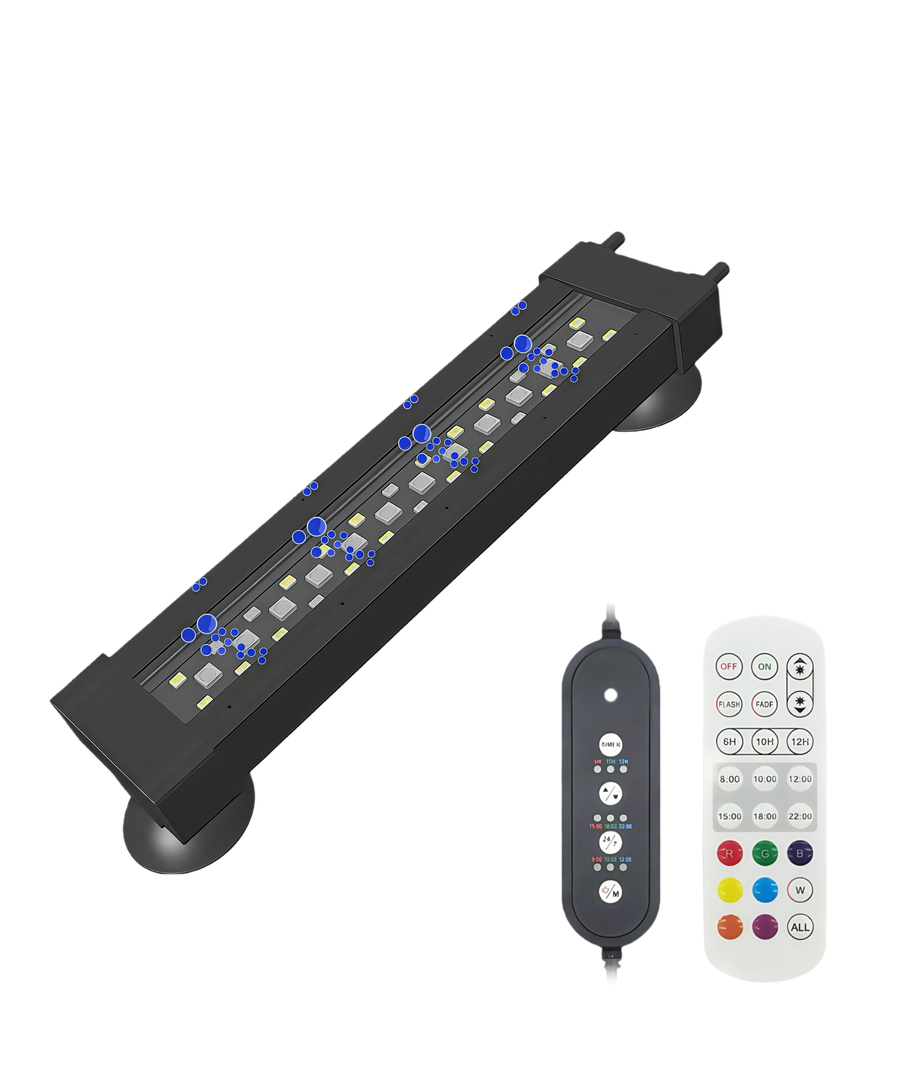 Den senaste akvariebelysningen erbjuder allt du behöver för att skapa en livfull och hälsosam miljö för dina vattenlevande vänner. Med dess kraftfulla ljuskälla och hållbara design kommer denna belysning att förbättra både utseendet och hälsan i ditt akvarium.