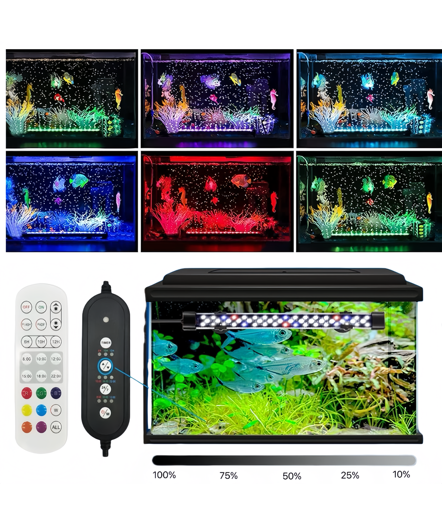 Denna armatur är också kompatibel med en luftpump och erbjuder en mångsidig ljusfärg med RGB+NW (naturvitt) belysning som både förbättrar färgerna på dina fiskar och stimulerar hälsosam växttillväxt. Den tåliga och flexibla konstruktionen gör den till en hållbar investering för ditt akvarium.