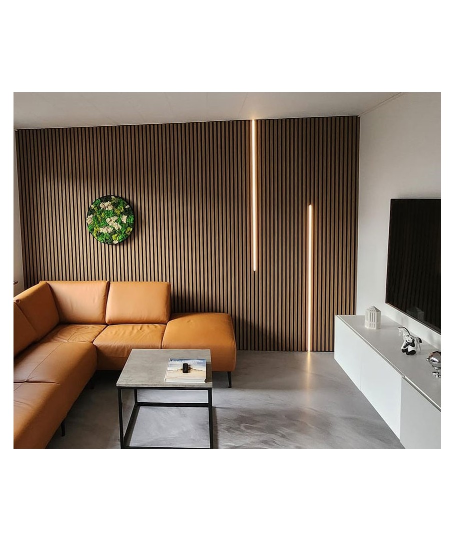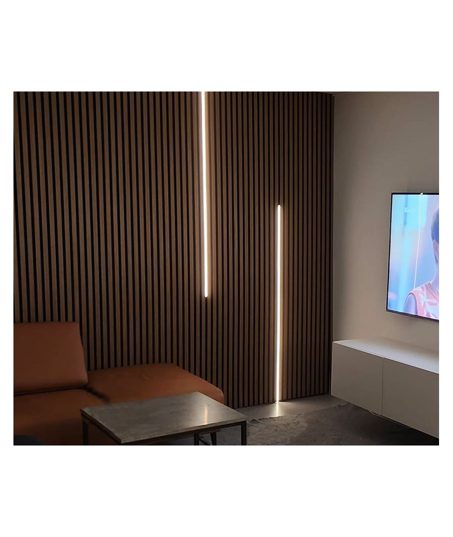 Få ut det mesta av dina akustikpaneler med denna profiluppsättning. Denna lösning kombinerar en svart aluminiumprofil med en varmvit COB LED-list, som ger elegant och diskret belysning utan synliga dioder. Perfekt för att skapa ett vackert och estetiskt ljus mellan lamellerna i dina akustikpaneler.