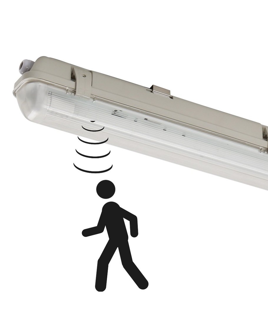 Högkvalitativ IP65 LED armatur med inbyggd sensor - Denna LED armatur levereras med en ljusstyrka på hela 3.100Lm, och på endast 20W totalt. Färgtemperaturen är 4000K (vit färg). En perfekt armatur för fuktiga miljöer.