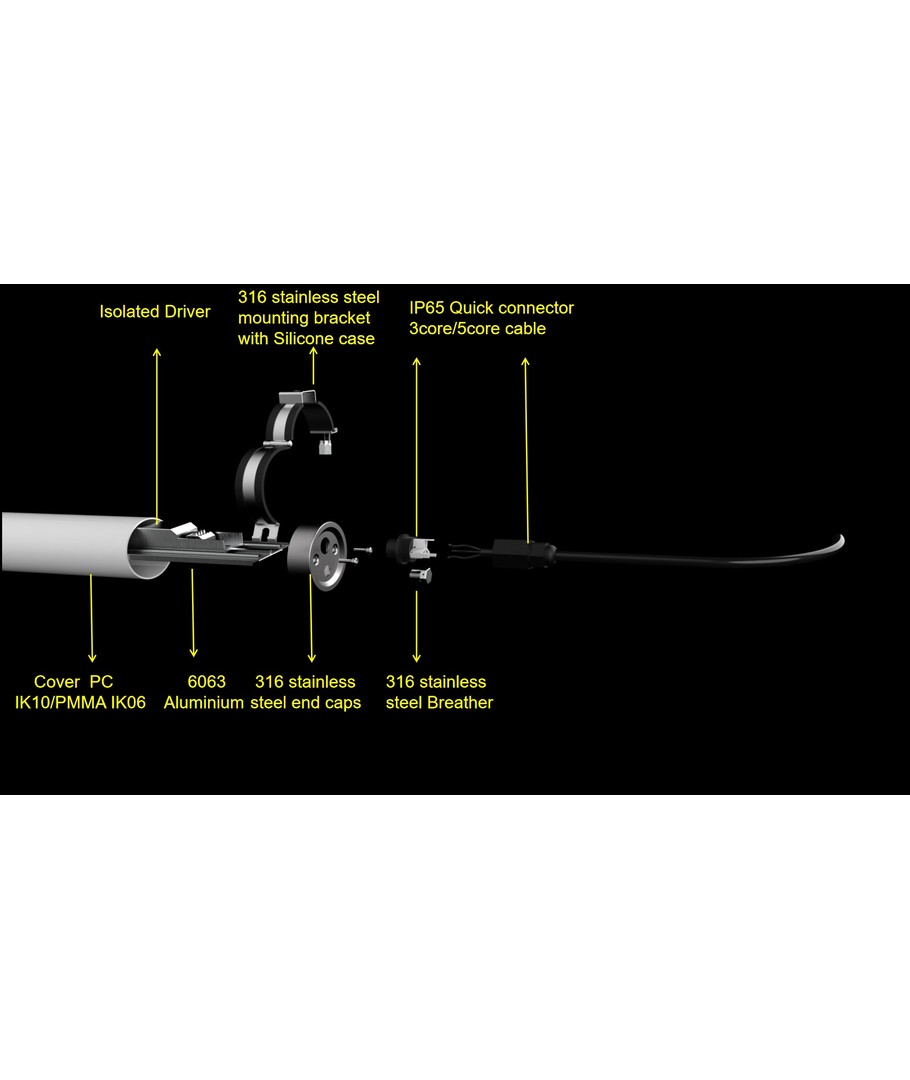 IP69K godkänd LED armatur på 120 cm med inbyggd ljuskälla.