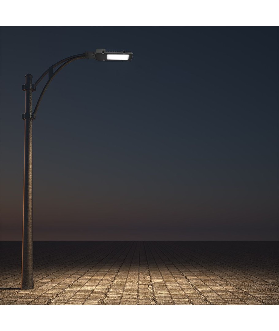 Med denna LED-gatlampa får du en långsiktig och effektiv belysningslösning som är lätt att installera och underhålla, tack vare dess öppning på Ø60mm.