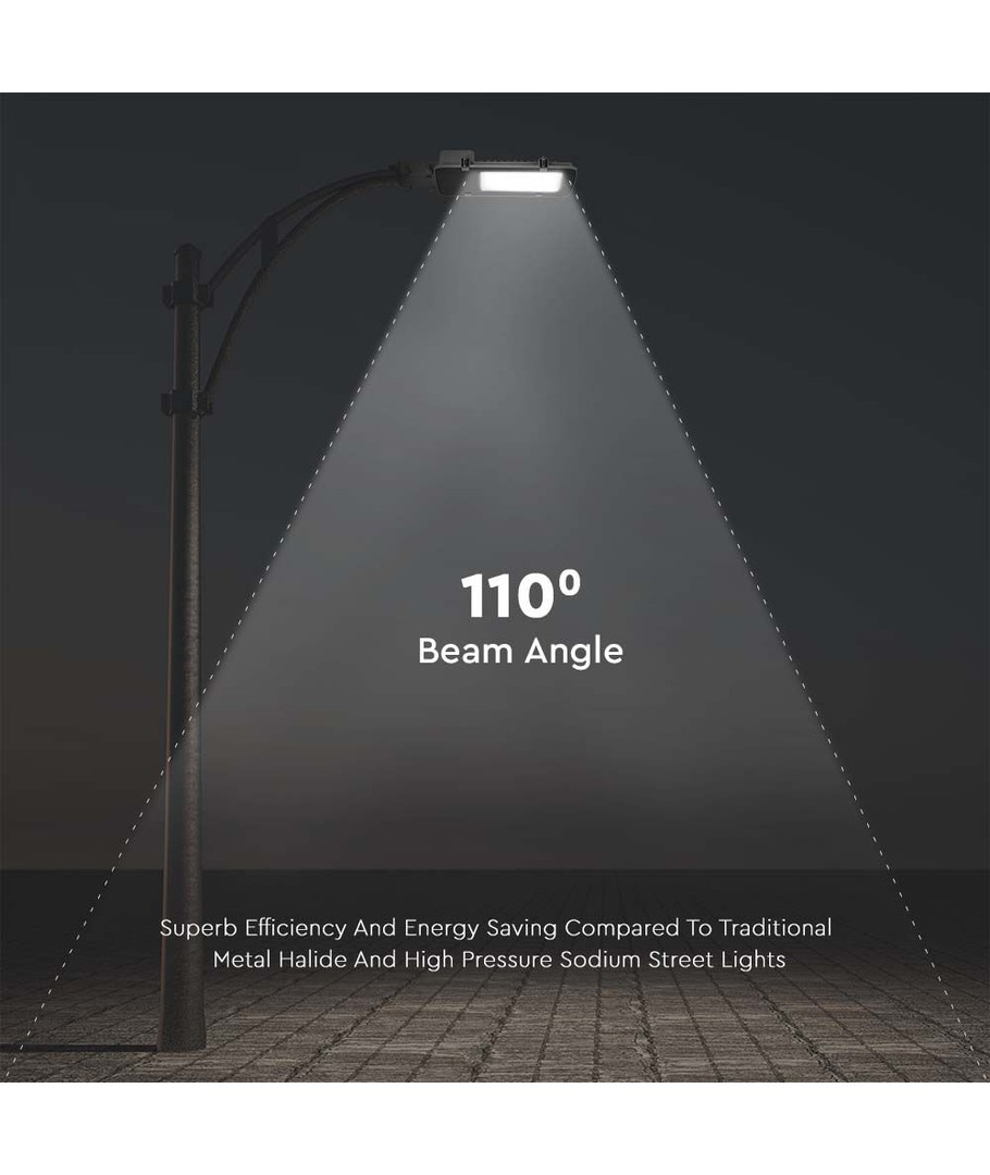 Denna gatlampa är det perfekta valet för dig som söker en kraftfull och pålitlig belysningslösning för utomhusmiljöer. Lampan erbjuder en effekt på 100W och en imponerande ljusstyrka på 10000 lm. Med en bred spridning på 110 grader, är den designad för att ge en jämn fördelning av ljuset över stora områden.