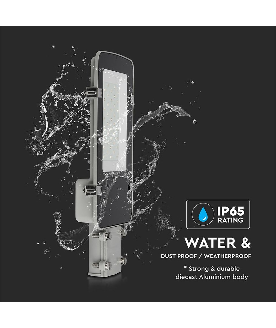 Gatlampan har ett stilrent grått hölje och är designad med hållbarhet i åtanke. Den har skyddsklass IP65, vilket innebär att den är tål vattenstänk och regn. Den är därmed lämplig för installation i olika utomhusmiljöer.