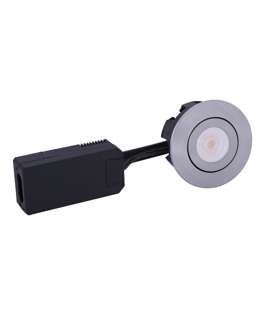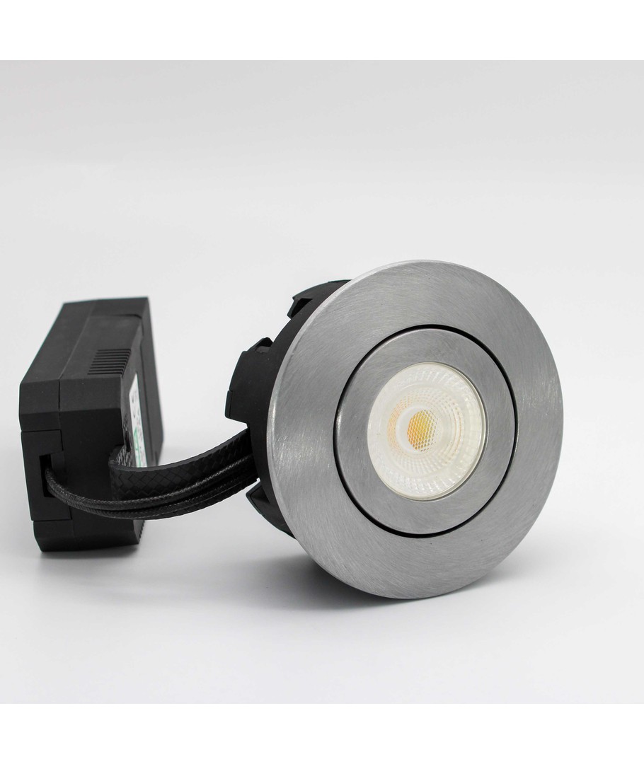 Denna DimTone LED indbygningsspot i borstat stål har en mycket låg inbyggnadshöjd på endast 38mm. Får monteras direkt i isolering och mot ångspärr. Spotten är på endast 6,5W, har en färgåtergivning på Ra95 och levereras med 60° spridningsvinkel på ljuskällan, för direkt anslutning till 230V via kopplingsbox.